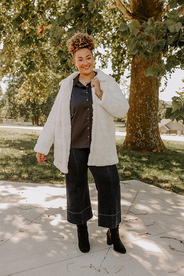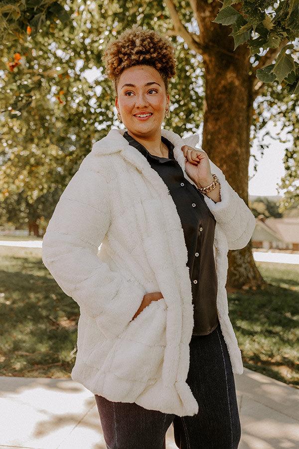 Uptown Charm Faux Fur Coat in Ivory Curves