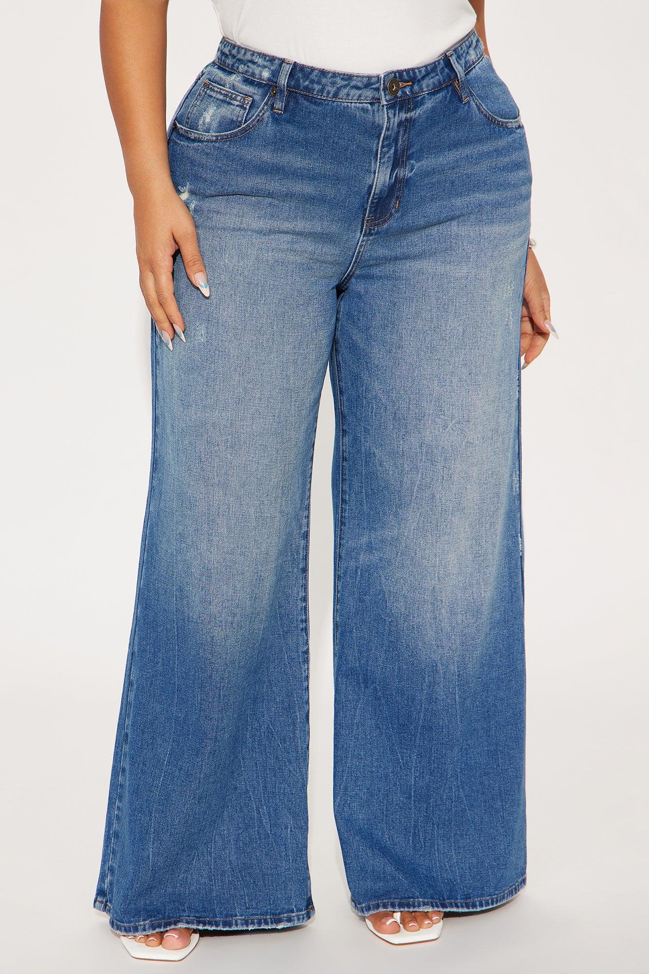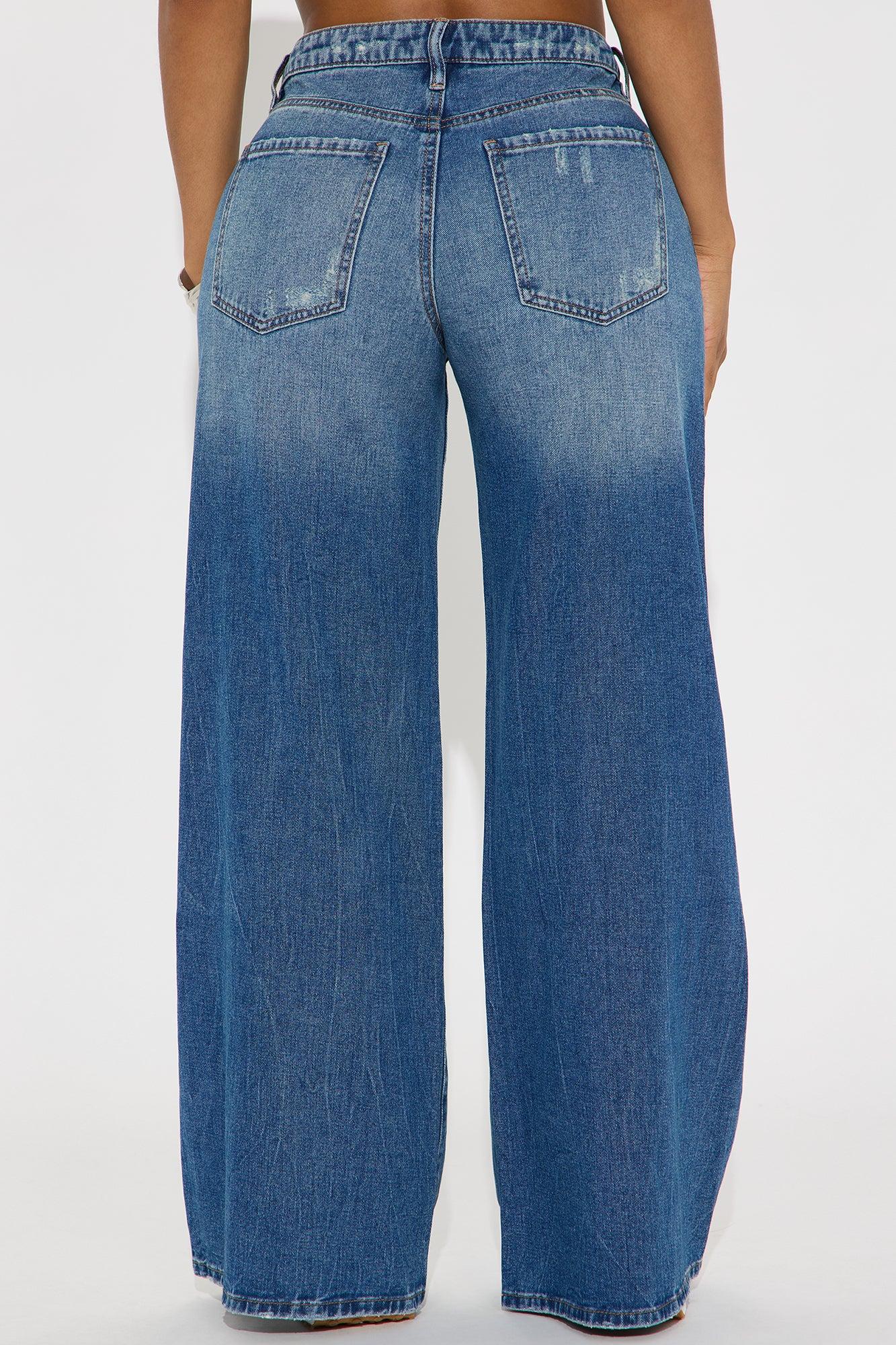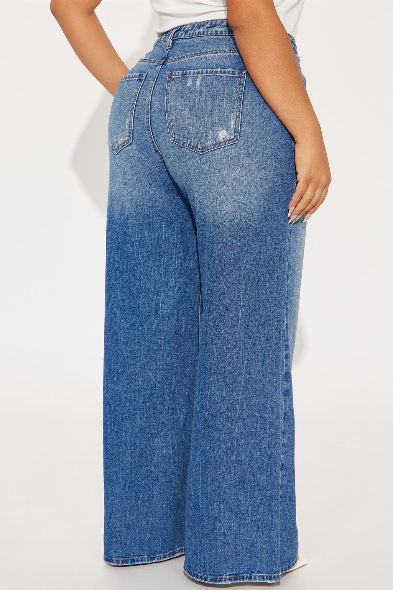 Available In Medium Wash. Wide Leg Jean 5 Pocket Distressing 10" Low Rise 32" Inseam Low Stretch Disclaimer: Due To The Specialized Distressing & Wash Process, Each Garment Is Unique. 93% Cotton 4% Polyester 3% Rayon Imported California Proposition 65WARNING: Cancer and Reproductive Harm - www.P65Warnings.ca.gov.