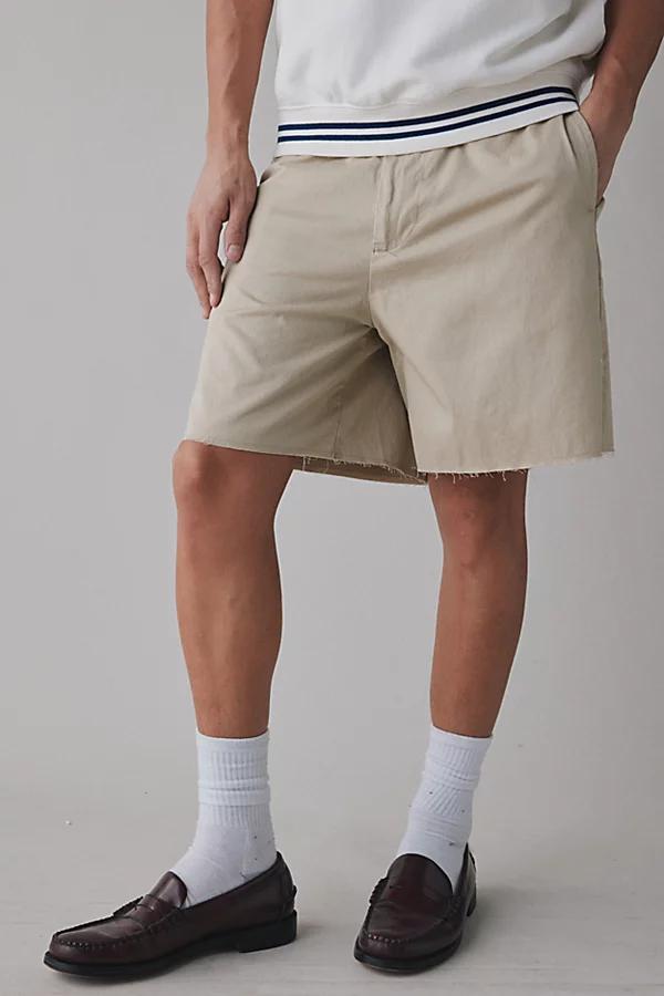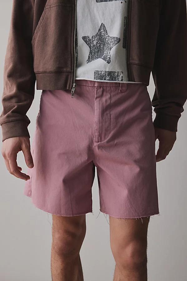 Chino shorts by Urban Outfitters. Cotton twill shorts with a cutoff hem that hits above the knee. Features UO cutoff chino short Cotton twill shorts Mid rise waist Cutoff hems Hits above the knee Content + Care 100% Cotton Machine wash Imported Size + Fit Model in Light Red is 62 and wearing size 32 Measurements taken from size 32 Rise:11 Inseam: 7 Leg opening: 13.5 Urban Outfitters UO Cutoff Chino Short in Navy, Mens at Urban Outfitters