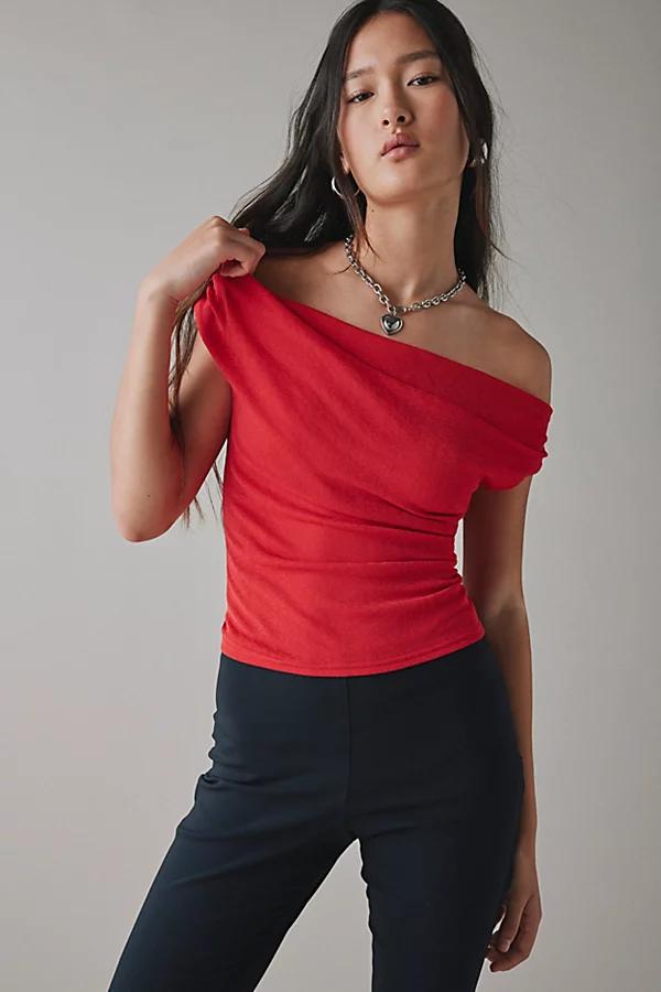 UO top in a slim & cropped fit designed for going out-out. Mesh top featuring an off-the-shoulder neckline, cap sleeves and ruching throughout for an effortless vibe. Only at UO. Features UO Fia mesh off-the-shoulder crop top Cold shoulder top Off-the-shoulder neckline and cap sleeves Draped bodice Slim stretch fit Cropped length Easy pull-over style UO exclusive Content + Care 100% Polyester Machine wash Imported Size + Fit Model in Red is 60 and wearing size Small Measurements taken from siz
