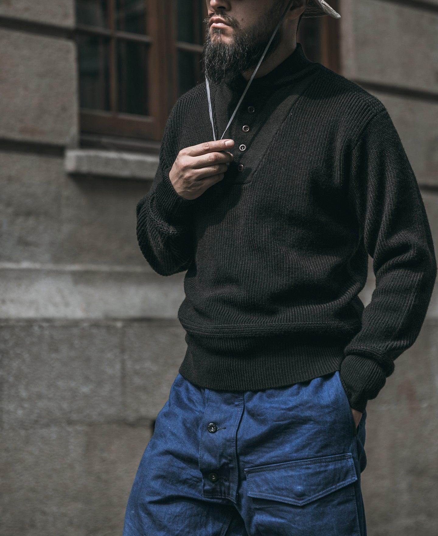 ◄DESCRIPTION US ARMY high neck sweater introduced in 1942, used in World War II and the Korean War, and used through the 1970s. It was often worn under a field jacket or Mackinac coat, also known as a Jeep sweater, to give soldiers enough warmth against the cold. ◄DETAILS 80% wool, 20% acrylic. Dry clean or Hand wash. Model Billy is height 5' 10"/ 178cm, weighs 159lbs/ 72.5kg, wears a size M/38, wears effect is slightly roomier ◄SIZE & FIT Please carefully read the size info before purchase! Different products have different size info. Please use this info as a general guide as measurements are approximate. IN CM Size Shoulder(IN) Chest(IN) S/36 17.7 40.2 M/38 18.1 41.7 L/40 18.7 43.3 XL/42 19.3 44.9 XXL/44 19.9 46.5 Size Sleeve(IN) Length((IN) S/36 22.8 24.0 M/38 23.4 24.6 L/40 24.0 25.2 XL/42 24.6 26.0 XXL/44 25.2 26.6 Size Shoulder(CM) Chest(CM) S/36 45.0 102.0 M/38 46.0 106.0 L/40 47.5 110.0 XL/42 49.0 114.0 XXL/44 50.5 118.0 Size Sleeve(CM) Length(CM) S/36 58.0 61.0 M/38 59.5 62.5 L/40 61.0 64.0 XL/42 62.5 66.0 XXL/44 64.0 67.5 In order to best determine fit, it may be helpful to compare our garment’s measurements to a similar garment you already own. Lay your garment on a flat surface and take all measurements from the outside of the garment. Click here to check out our Garment Measuring Guide. ** If you are still confused, you can Contact Us to help you choose the size. ** ◄SHIPPING & RETURNS Free shipping on orders $99 (U.S. dollar), Otherwise, a shipping fee of $6.99 will be charged. Click here to see our full shipping policy. BRONSON offers 30 days returning period. Click here to see our full return & exchange policy. * All items must be returned in unused, original condition with tags attached.