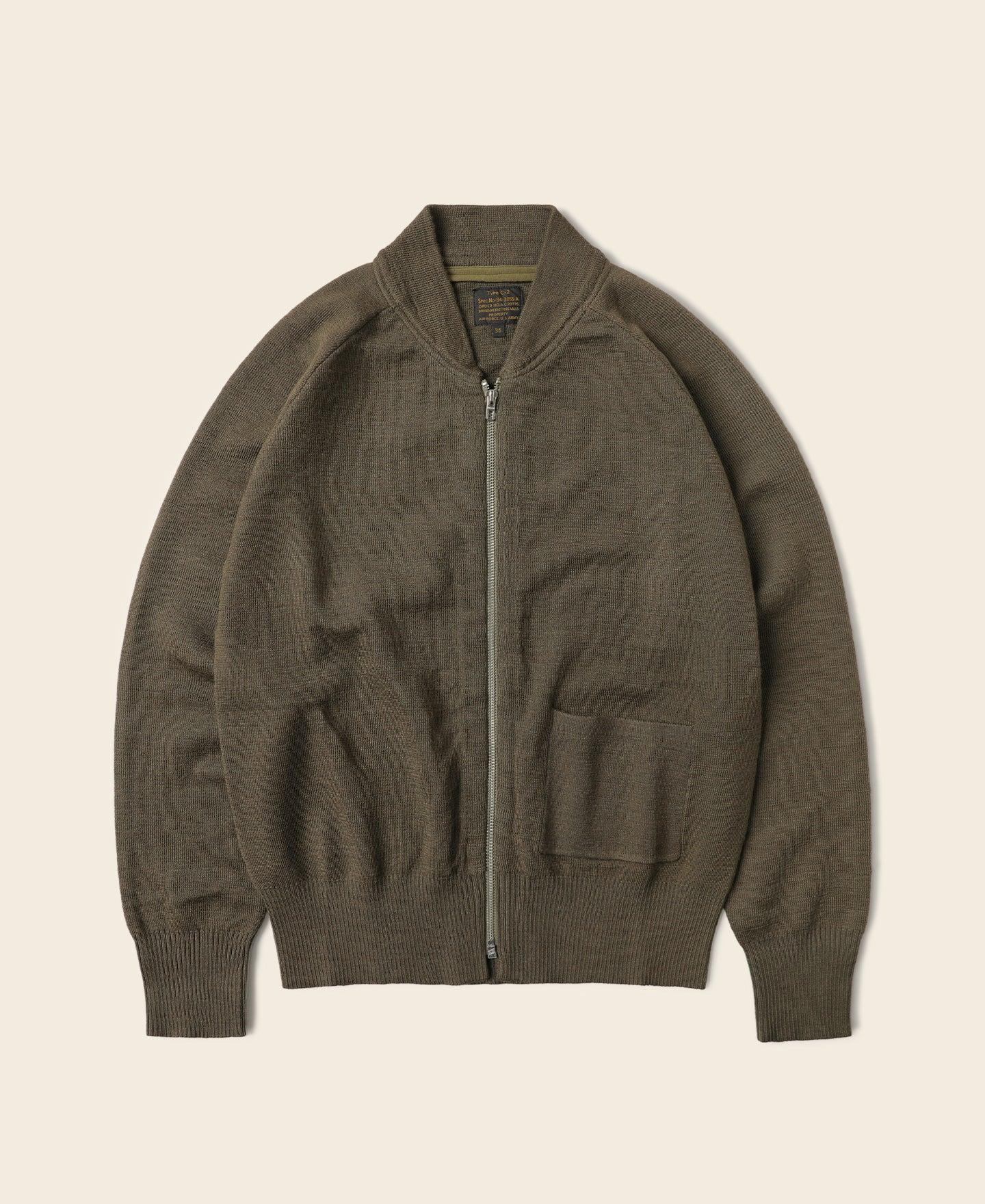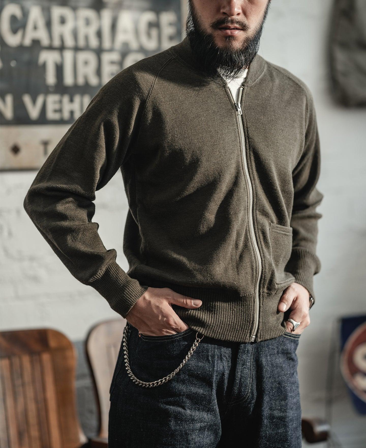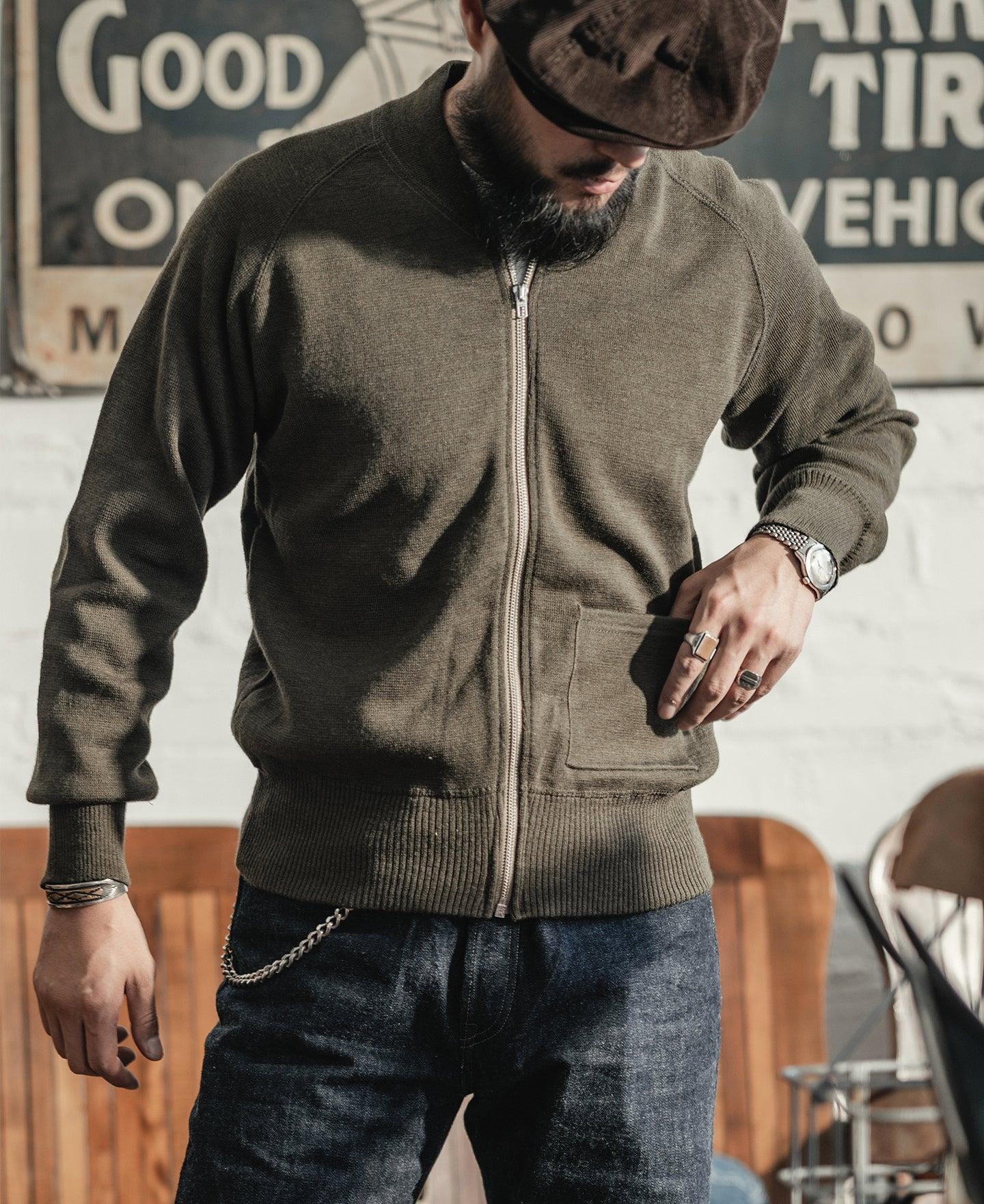 ◄DESCRIPTION During WWII, the C-2 was an inner-wearing sweater for the mid-temperature or cold zones. It can be worn inside aeronautical flight jackets such as A-2, B-3, B-6. C-2 sweater is not used in large quantities. The C-2 sweater is not too thick, and the wear and tear are very high. The collections that can be preserved so far are rare and of high value. Its appearance is very low-key, early OD color is a yellowish olive green, and some even close to brown, zipper closure is characteristic. You should know that in the military uniform that pays attention to efficiency, it is often to choose the pullover, but the C-2 is still arbitrarily using a zipper, the front has a pocket to place small objects, similar to the baseball sweater's knitted thread collar design, wearing an unexpected spirit. ◄DETAILS 70% wool, 30% acrylic TALON Zipper Dry clean or Hand wash ◄SIZE & FIT Please carefully read the size info before purchase! Different products have different size info. Please use this info as a general guide as measurements are approximate. Model Billy is height 5' 10"/ 178cm, weighs 159lbs/ 72.5kg, wears a size M/38, wears effect is fit Model Vans is height 5' 10"/ 178cm, weighs 136lbs/ 62kg, wears a size M/38,wears effect is slightly roomier IN CM Size Shoulder(IN) Chest(IN) S/36 - 40.9 M/38 - 42.5 L/40 - 44.1 XL/42 - 45.7 XXL/44 - 47.2 Size Sleeve(IN) Length((IN) S/36 23.8 24.4 M/38 24.4 25.2 L/40 25.0 26.0 XL/42 25.6 26.8 XXL/44 26.0 27.6 Size Shoulder(CM) Chest(CM) S/36 - 104.0 M/38 - 108.0 L/40 - 112.0 XL/42 - 116.0 XXL/44 - 120.0 Size Sleeve(CM) Length(CM) S/36 60.5 62.0 M/38 62.0 64.0 L/40 63.5 66.0 XL/42 65.0 68.0 XXL/44 66.0 70.0 In order to best determine fit, it may be helpful to compare our garment’s measurements to a similar garment you already own. Lay your garment on a flat surface and take all measurements from the outside of the garment. Click here to check out our Garment Measuring Guide. ** If you are still confused, you can Contact Us to help you choose the size. ** ◄SHIPPING & RETURNS Free shipping on orders $99 (U.S. dollar), Otherwise, a shipping fee of $6.99 will be charged. Click here to see our full shipping policy. BRONSON offers 30 days returning period. Click here to see our full return & exchange policy. * All items must be returned in unused, original condition with tags attached. ◄FAQ Haven't found the answer you are looking for? Take a look at our Frequently Asked Questions or Contact Us.