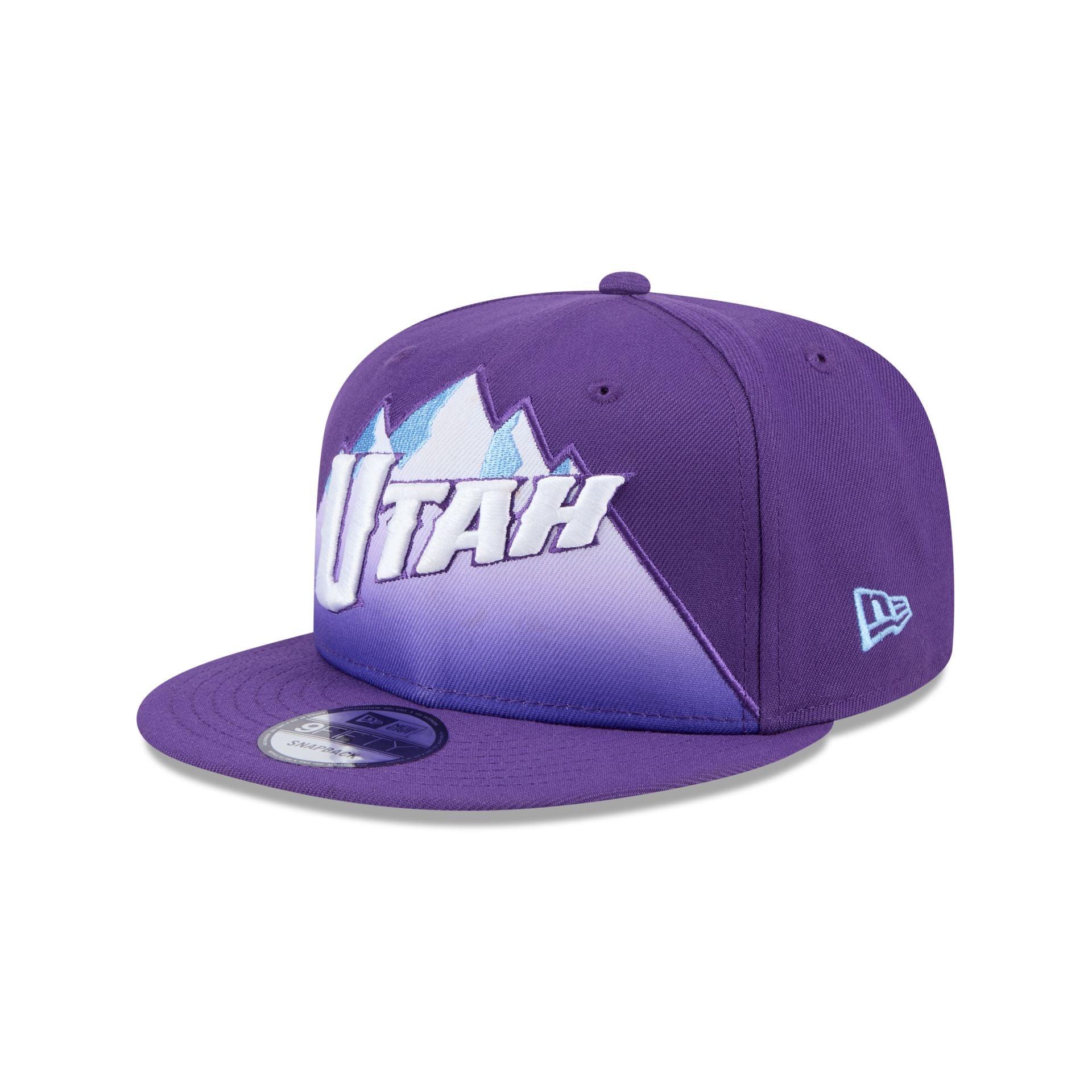 The Utah Jazz 2024 City Edition 9FIFTY Snapback features an embroidered Jazz Utah wordmark at the front panels with an NBA Logoman above a snapback closure at the rear. Additional details include a team logo at the right-wear side and a gray undervisor.