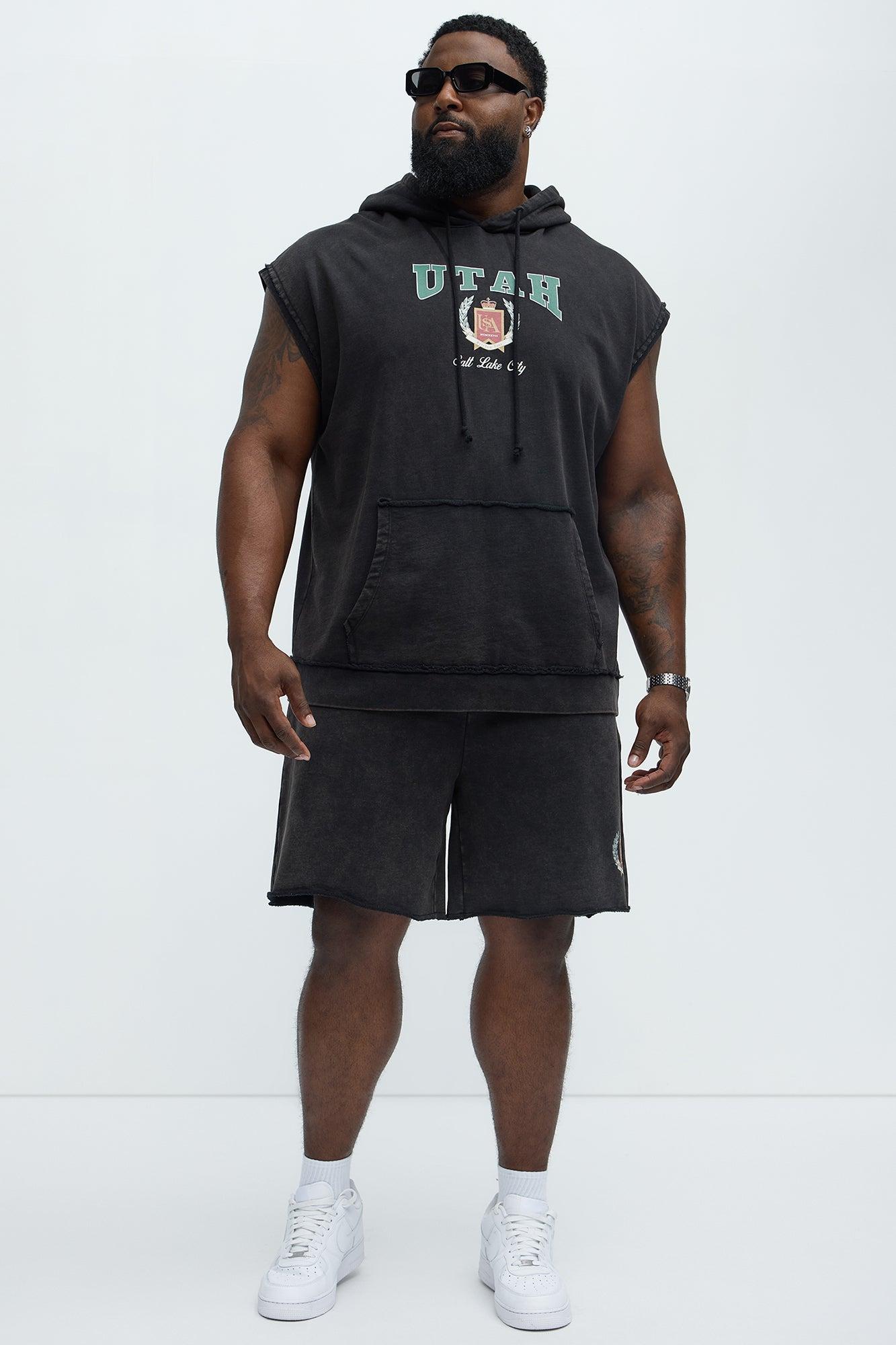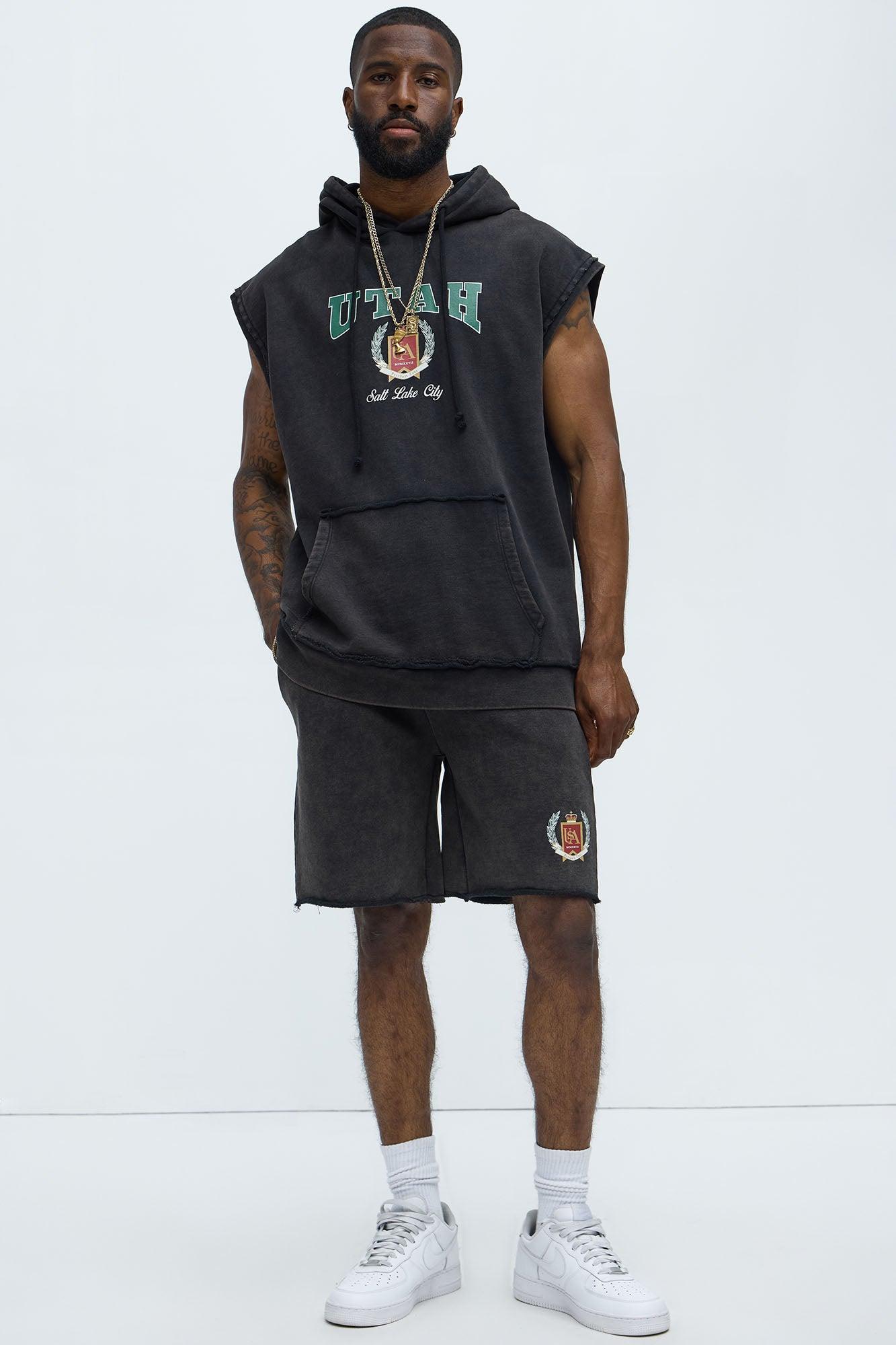 Available In Black. Elastic Waistband Drawstring Side Pockets Back Pocket Pair With "Utah Sleeveless Hoodie" 80% Cotton 20% Polyester Disclaimer: Due To The Wash And Printing Process A Difference In Saturation May Occur. Each Garment Is Unique. Imported