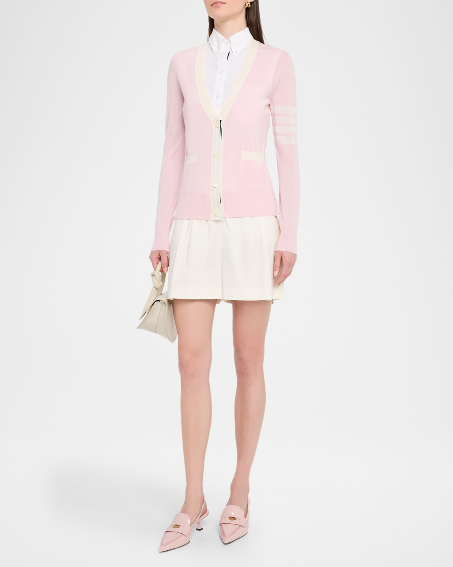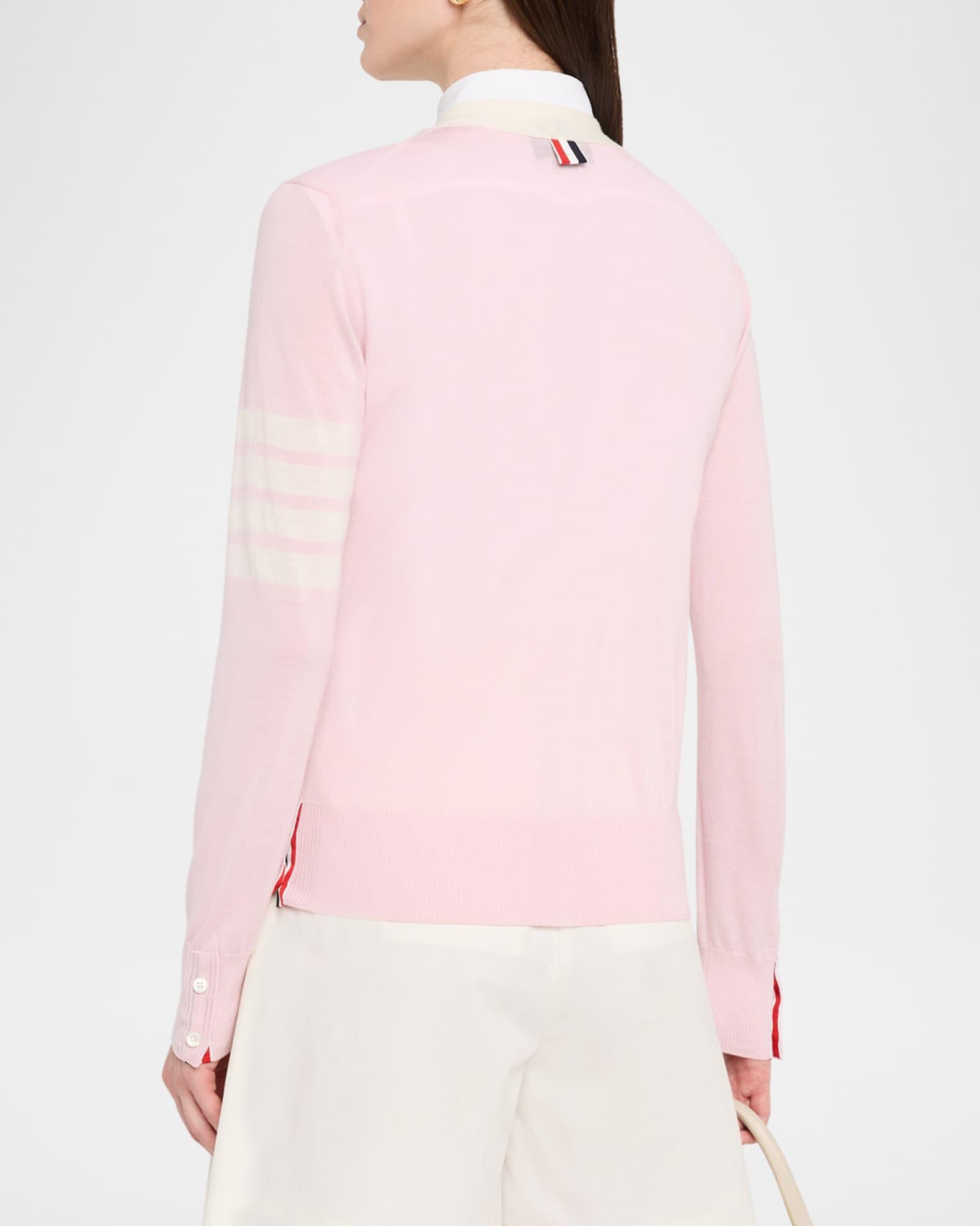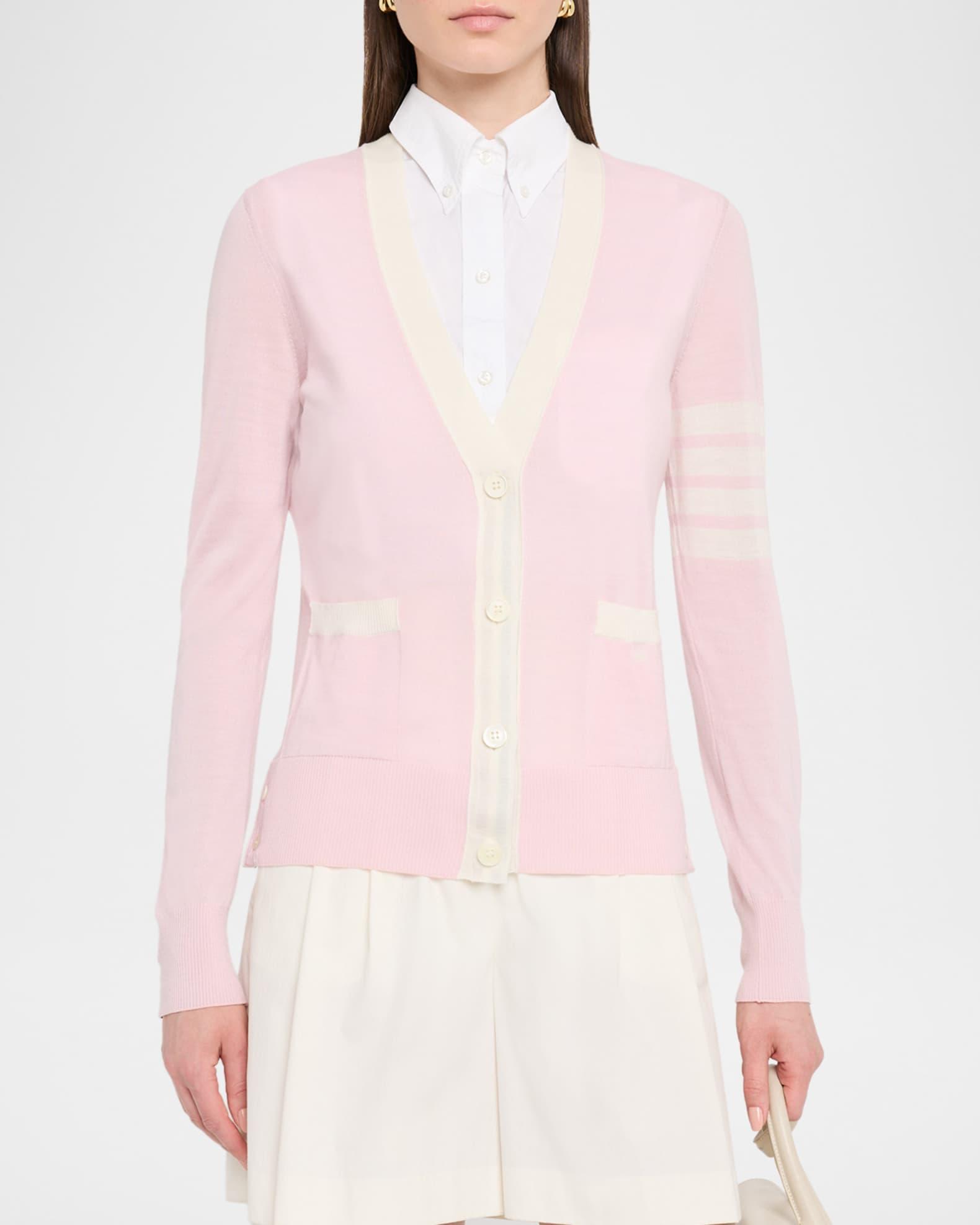 V-Neck 4-Bar Fine Merino Wool Cardigan