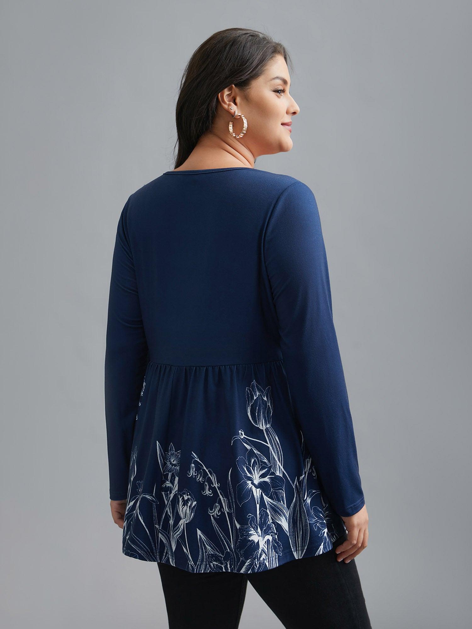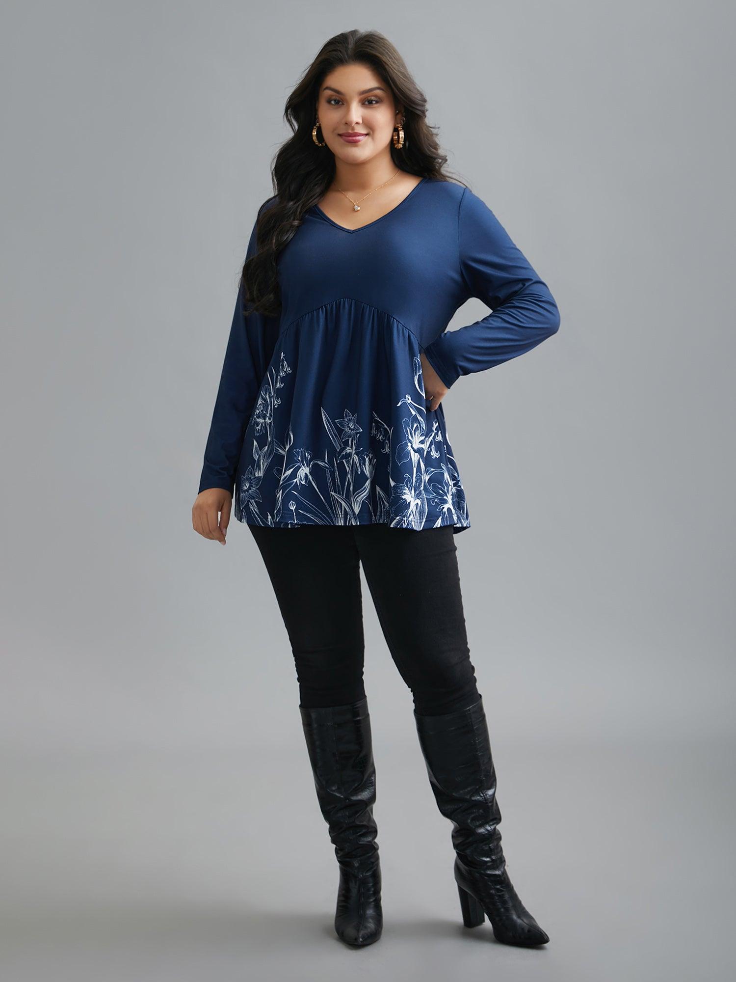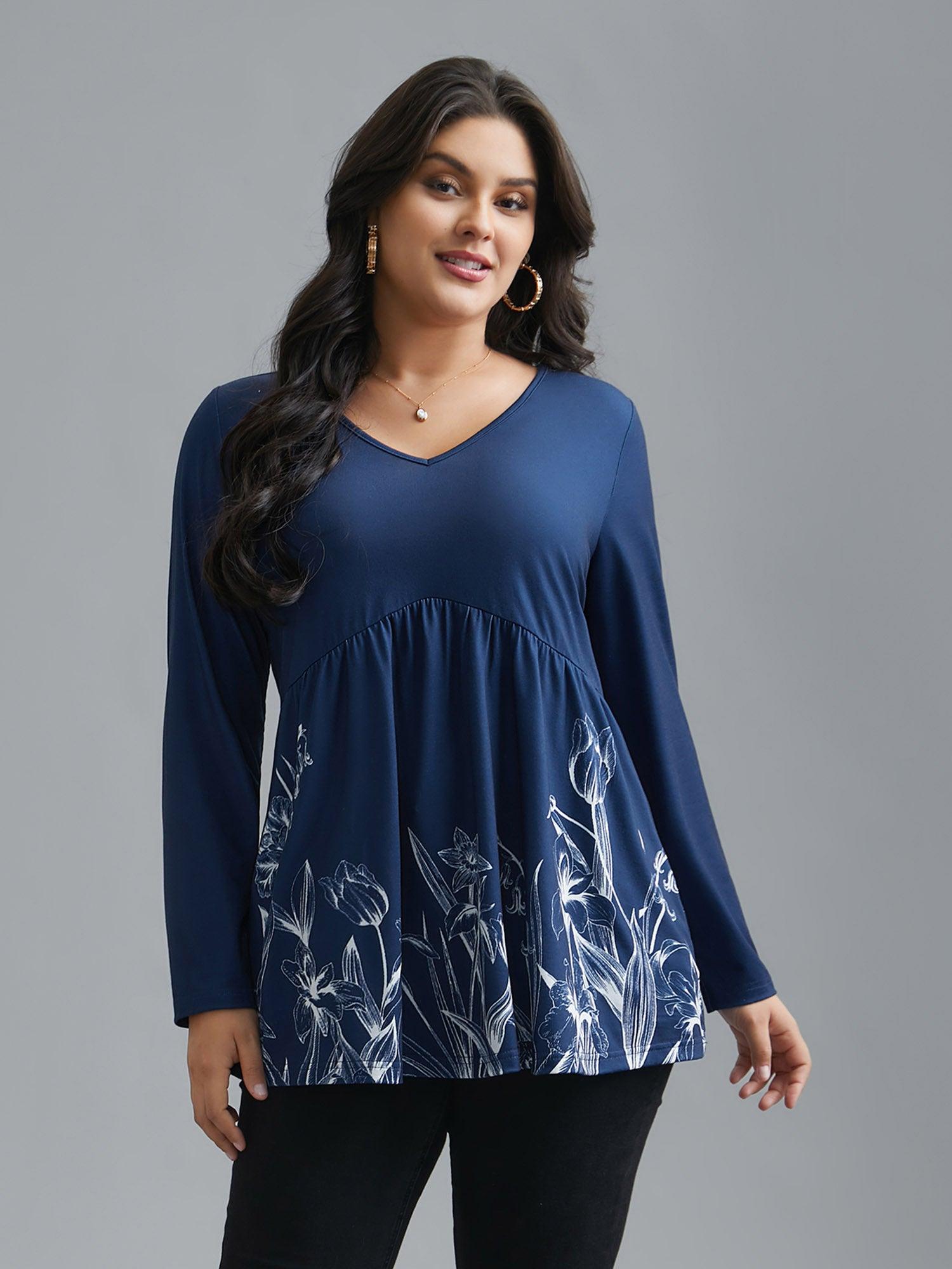 Shop V Neck Boho Print Gathered Top now and redefine your style with confidence at BloomChic. Tailored for mid and plus-size women. This trendy Tops Women, sizes 10-30. Season:Winter;Color:DarkBlue;Style:Elegant;Pattern Type:Natural Flowers;Prints:Floral;Neckline:V-neck;Sleeve Type:Regular Sleeve;Details:Gathered;Pocket:No-pocket