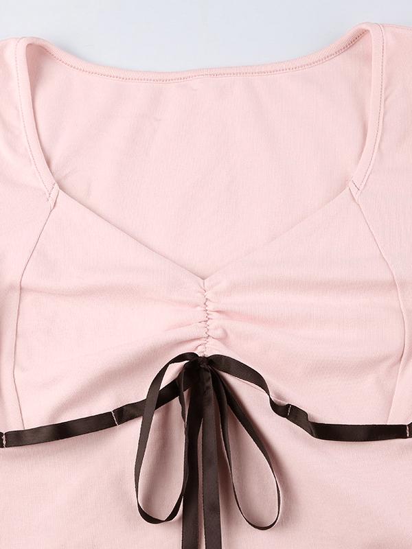 Short Sleeve Woven Front Bow Tie Top - 5 Colors*