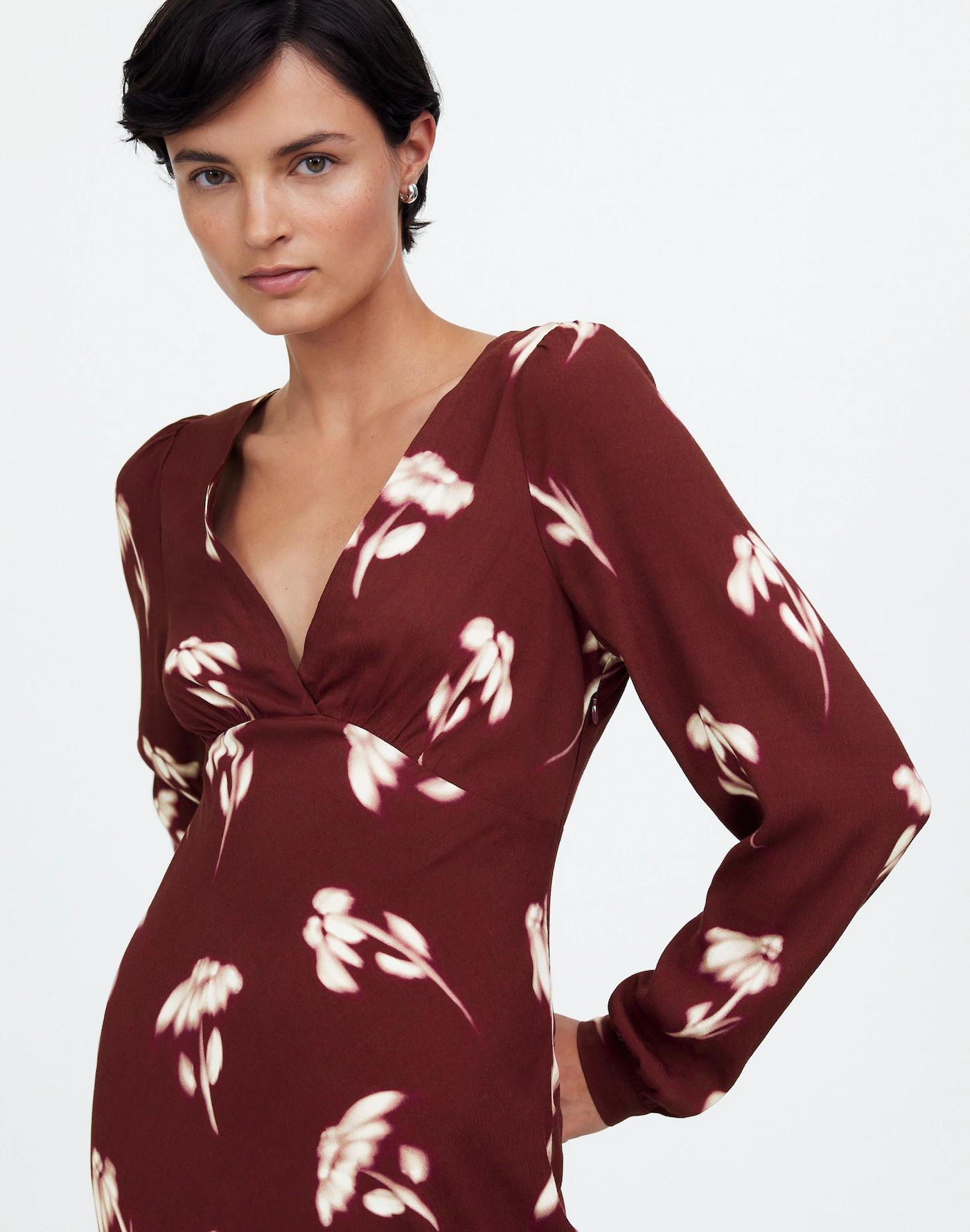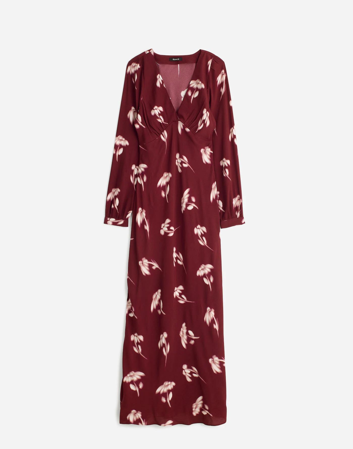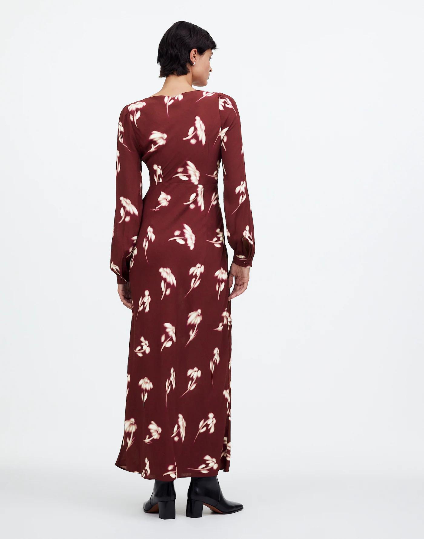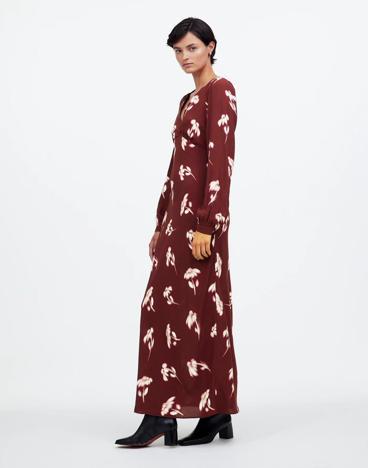 V-Neck Cuff-Sleeve Maxi Dress in Floral