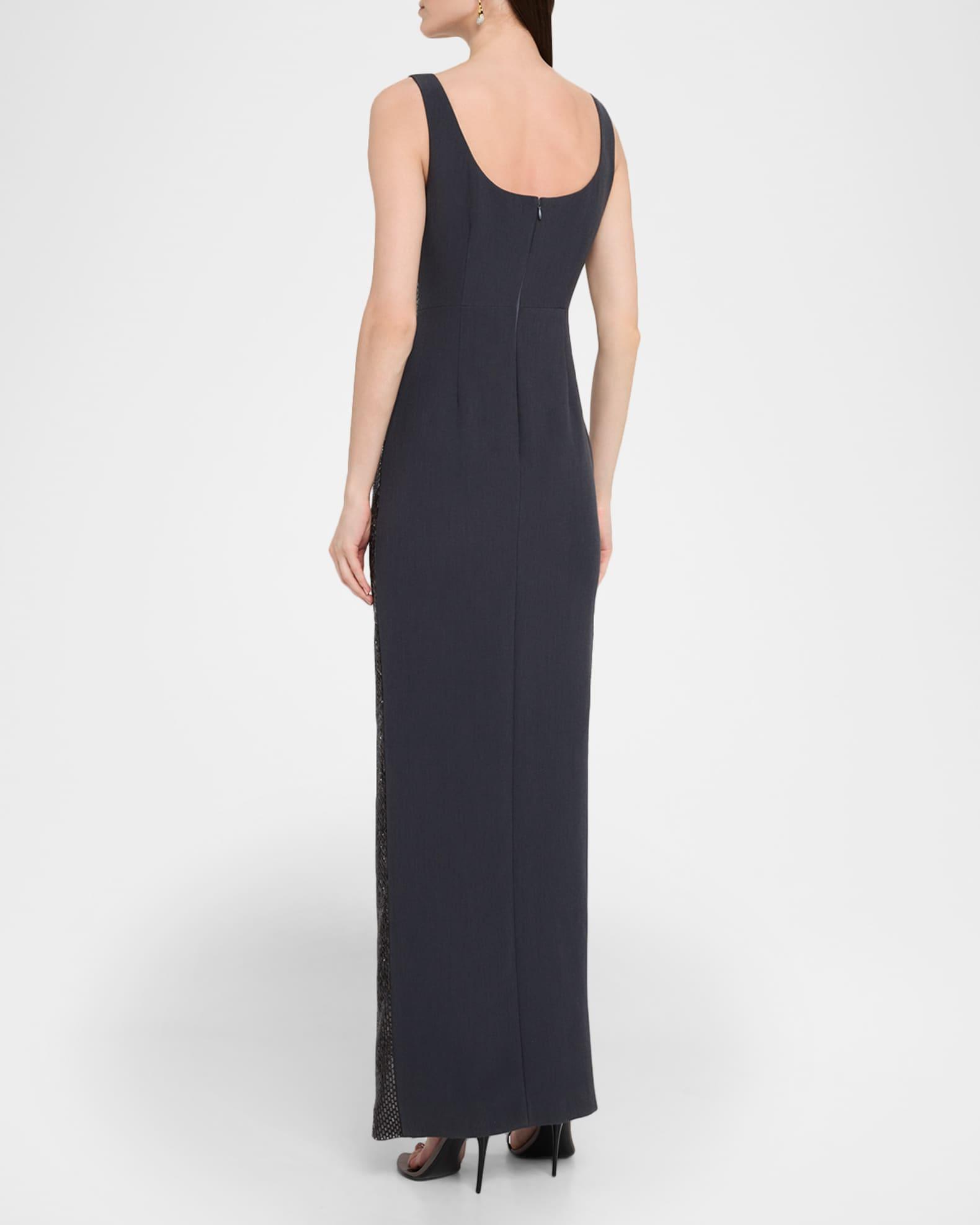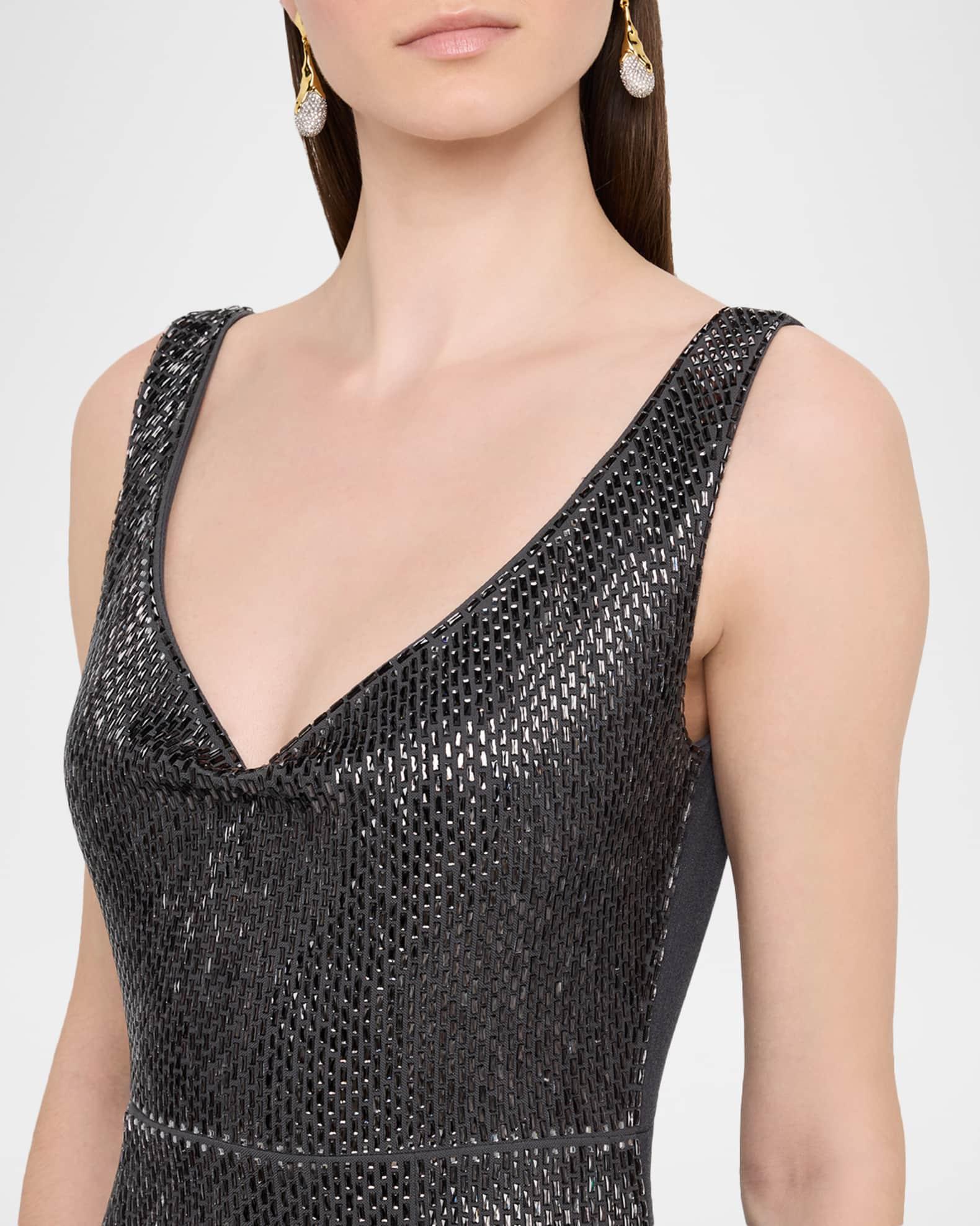 V-Neck Diamante Crepe Sleeveless Gown
