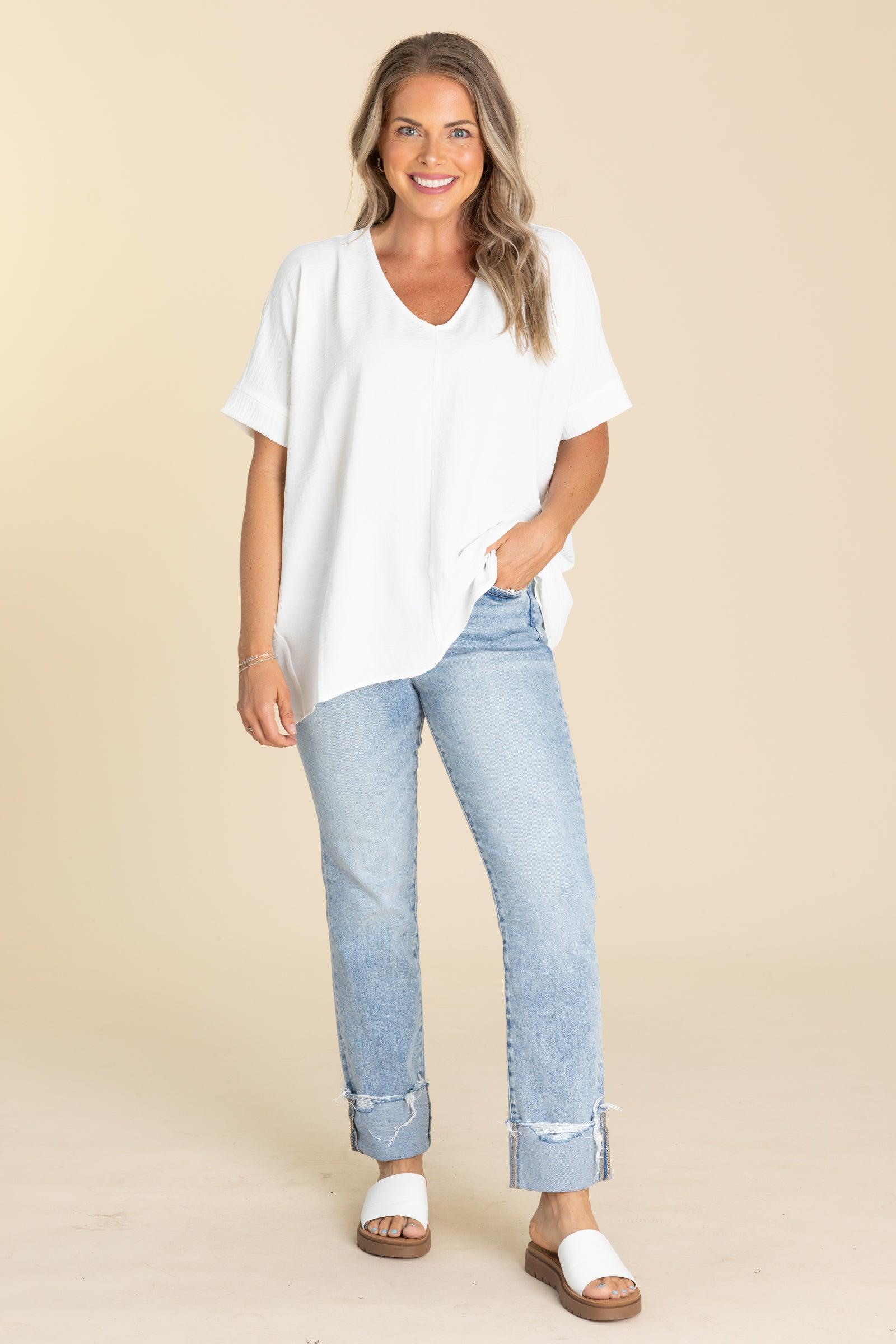 Product Details Colors: Black/ Mauve/ Off White Print: Solid Neckline: V-Neck Sleeve: Short Sleeve Hemline: Straight Brand: Zenana Material and Care 100% Polyester Hand Wash Cold Hang/Line Dry Size and Fit Small: Bust 56" Waist 54" Length 28" Medium: Bust 58" Waist 56" Length 28" Large: Bust 60" Waist 58" Length 28" X Large: Bust 62" Waist 60" Length 28" 1X Large: Bust 64" Waist 62" Length 28" 2X Large: Bust 66" Waist 64" Length 28" 3X Large: Bust 68" Waist 66" Length 28" Erica is 5’7” and wearing her true size small