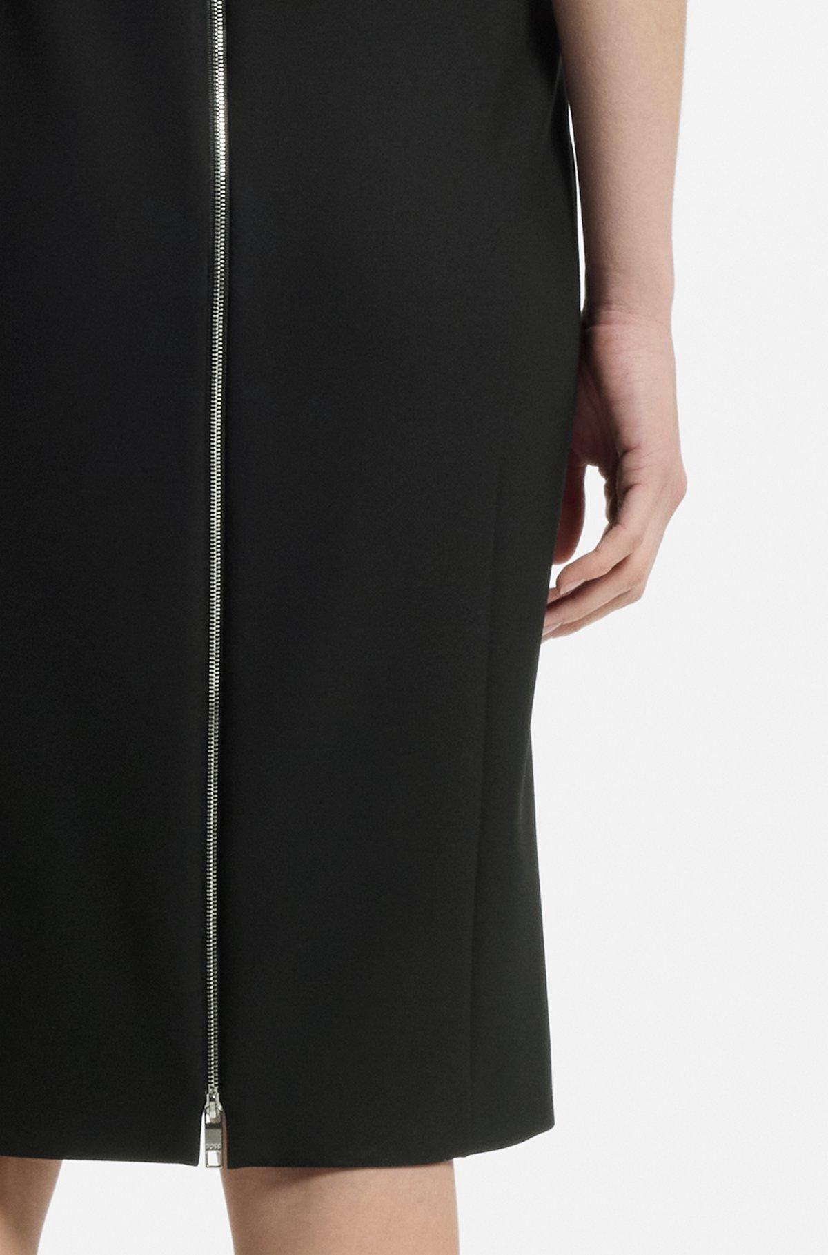 An understated V-neck dress with flattering seaming by BOSS. This unlined piece is crafted in stretch material with an exposed rear zip. This product is made with cellulose fibers, derived from natural raw wood material and sourced from managed forests.