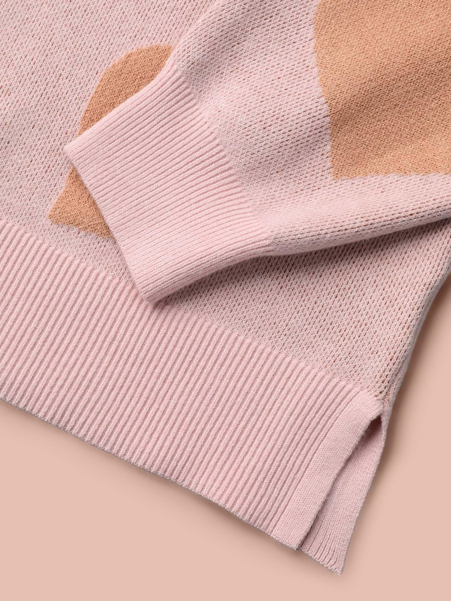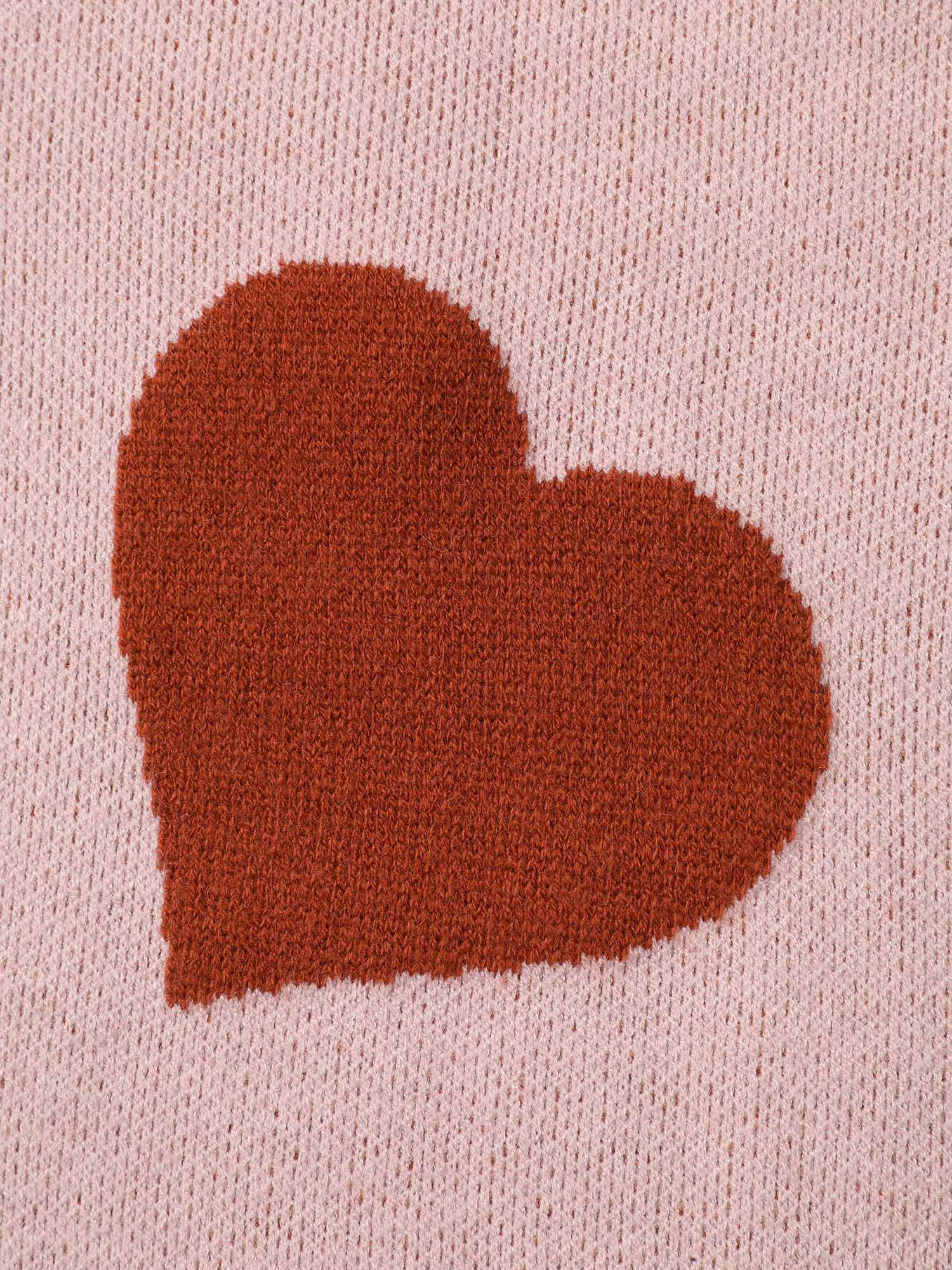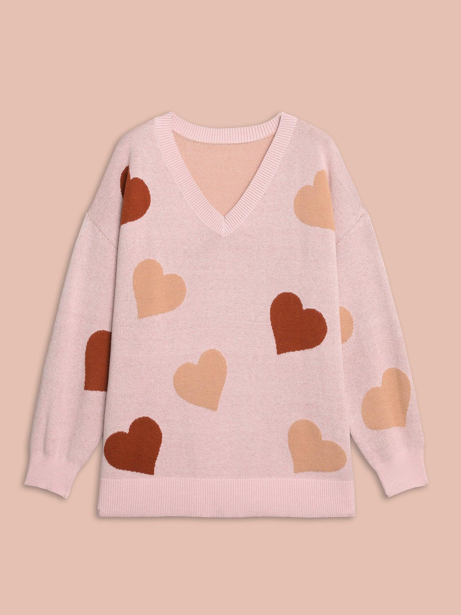 V-Neck Heart Jacquard Contrast Pullover Female
