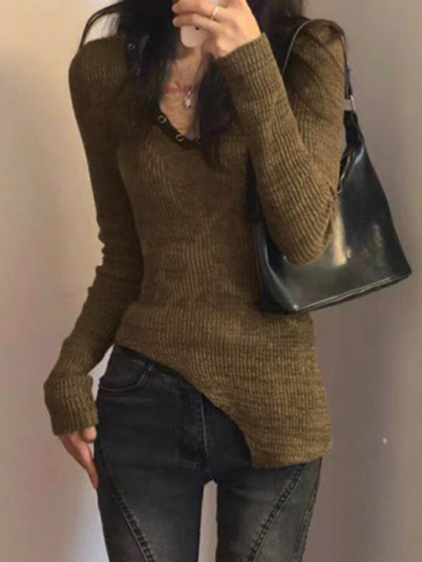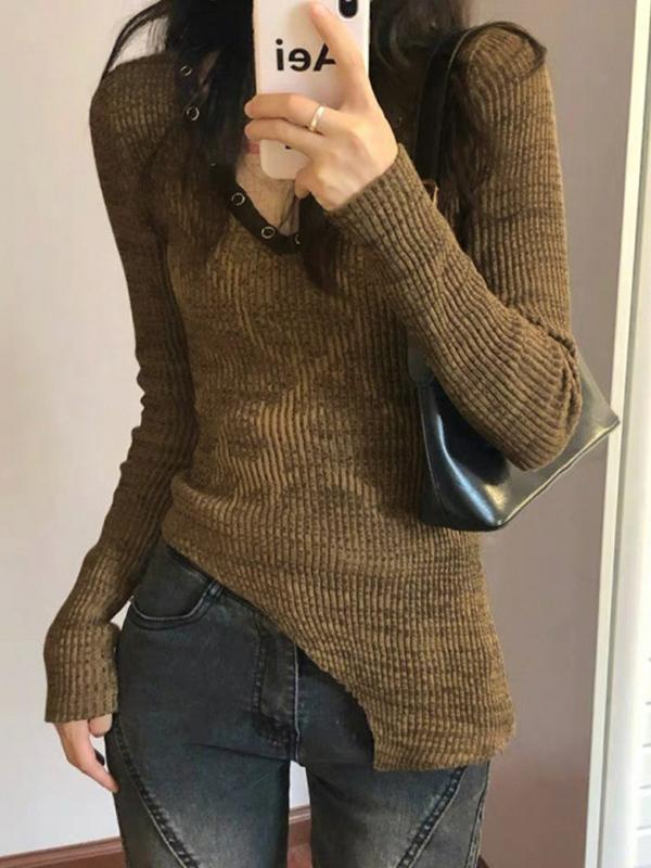 V Neck Hem Lrregular Knit Sweater