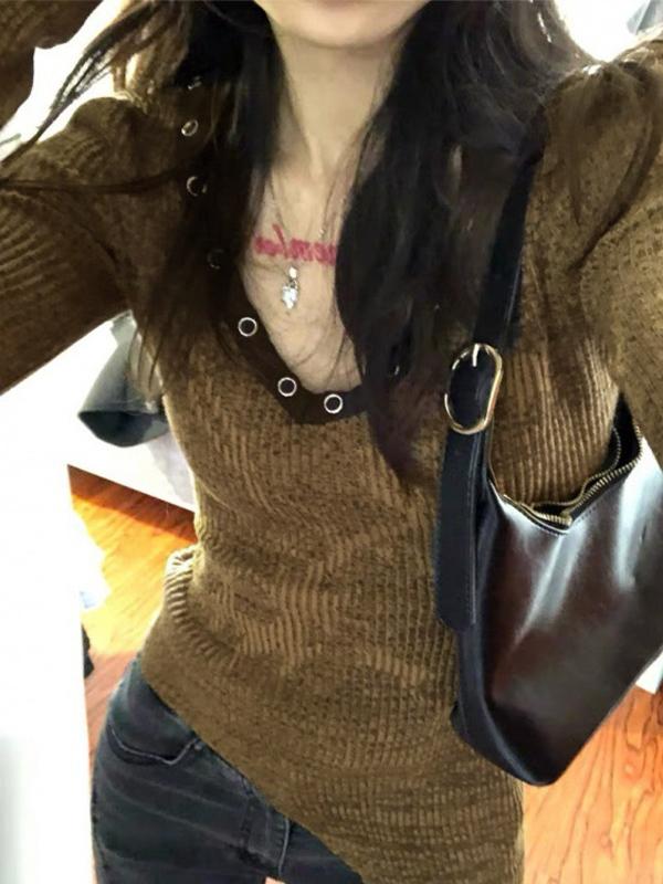 Long Sleeve V Neck Collard Sweater