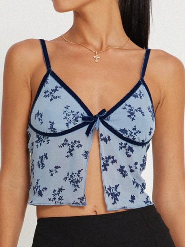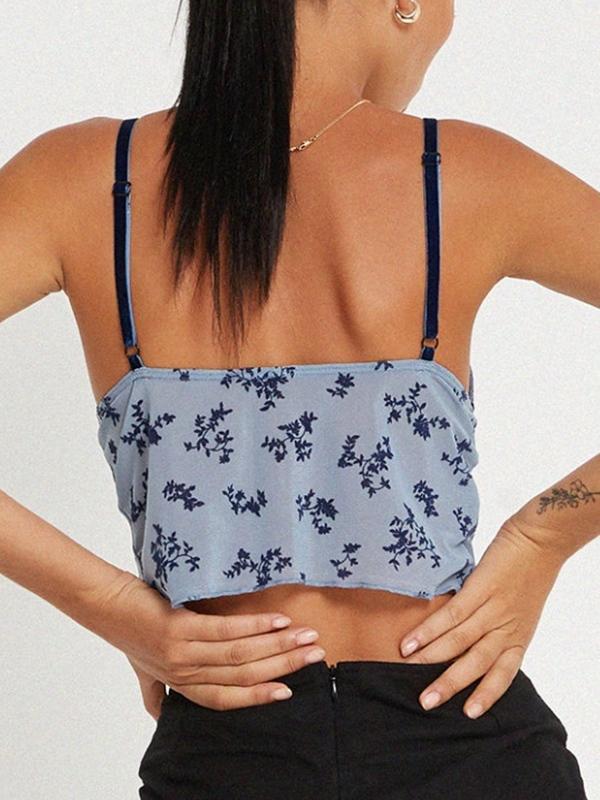 V Neck Mesh See Through Print Cami Top