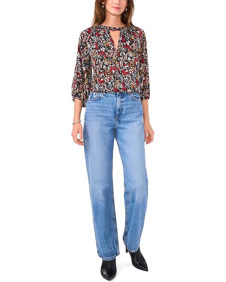 Add a vibrant charm to your everyday styling with the Vince Camuto® Peasant Sleeve Key Hole Blouse, that looks stunning when paired with a classic denim jeans. This pull-on style blouse features a classic-fit, boat neck with V-shaped keyhole cutout at front, three-fourth sleeves with elasticated cuffs, and an allover floral print.