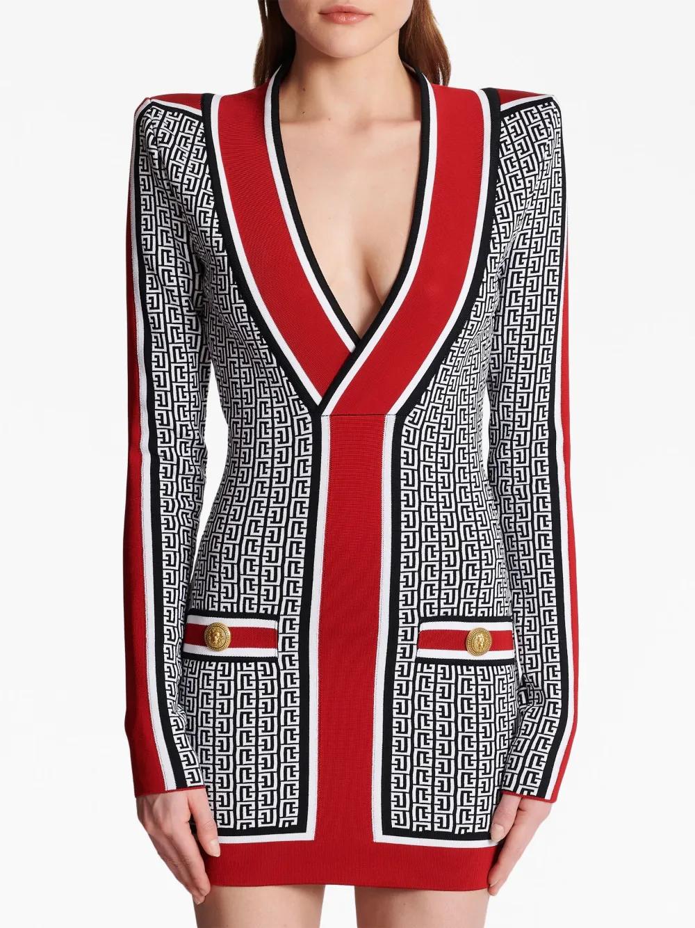 V-neck monogram knitted minidress