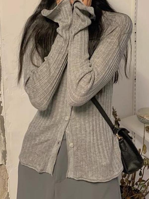 Solid Color Ribbed Button Slim Long Sleeve Knit