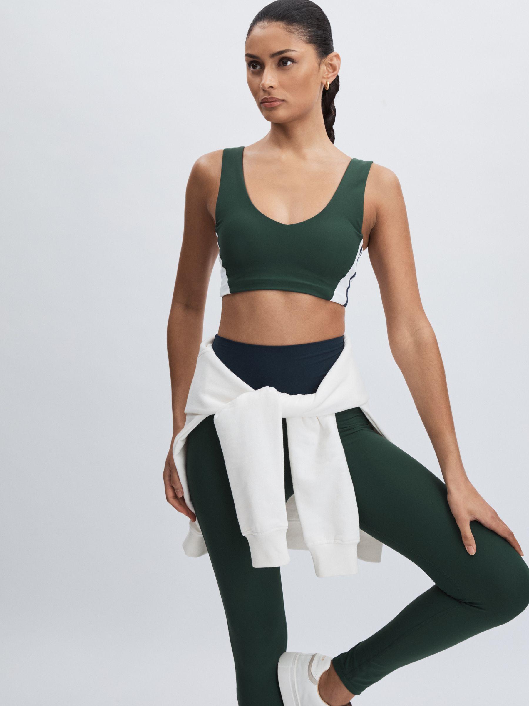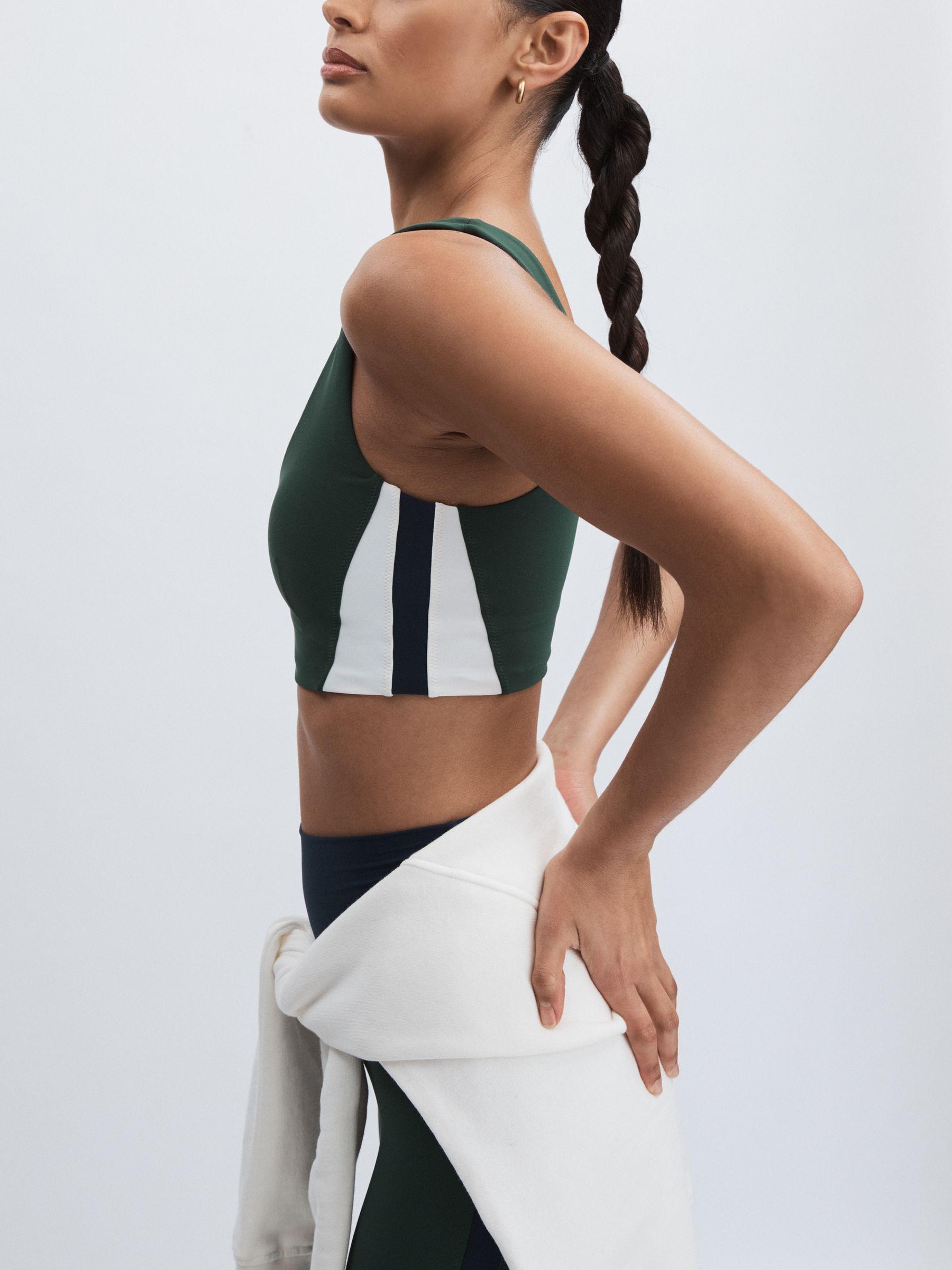 The Playoff sports bra combines functionality with sporty style. Designed with soft stretch for a supportive fit, it showcases bold colour-blocking and a flattering V-Neckline. Removable padding ensures a personalised feel. Made with stretch, colour-blocking, V-Neckline, scoop back, removable padding. Introducing Reiss x The Upside, our exclusive collection of women’s athleisurewear combining The Upside’s sporting expertise with our unwavering eye for style.