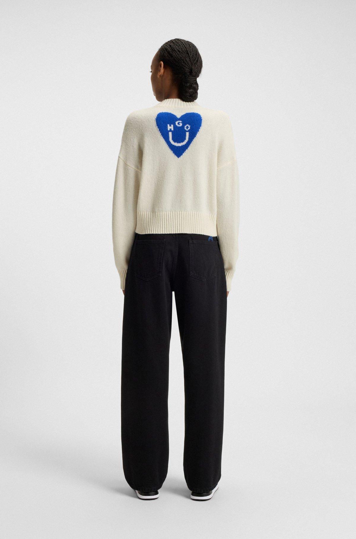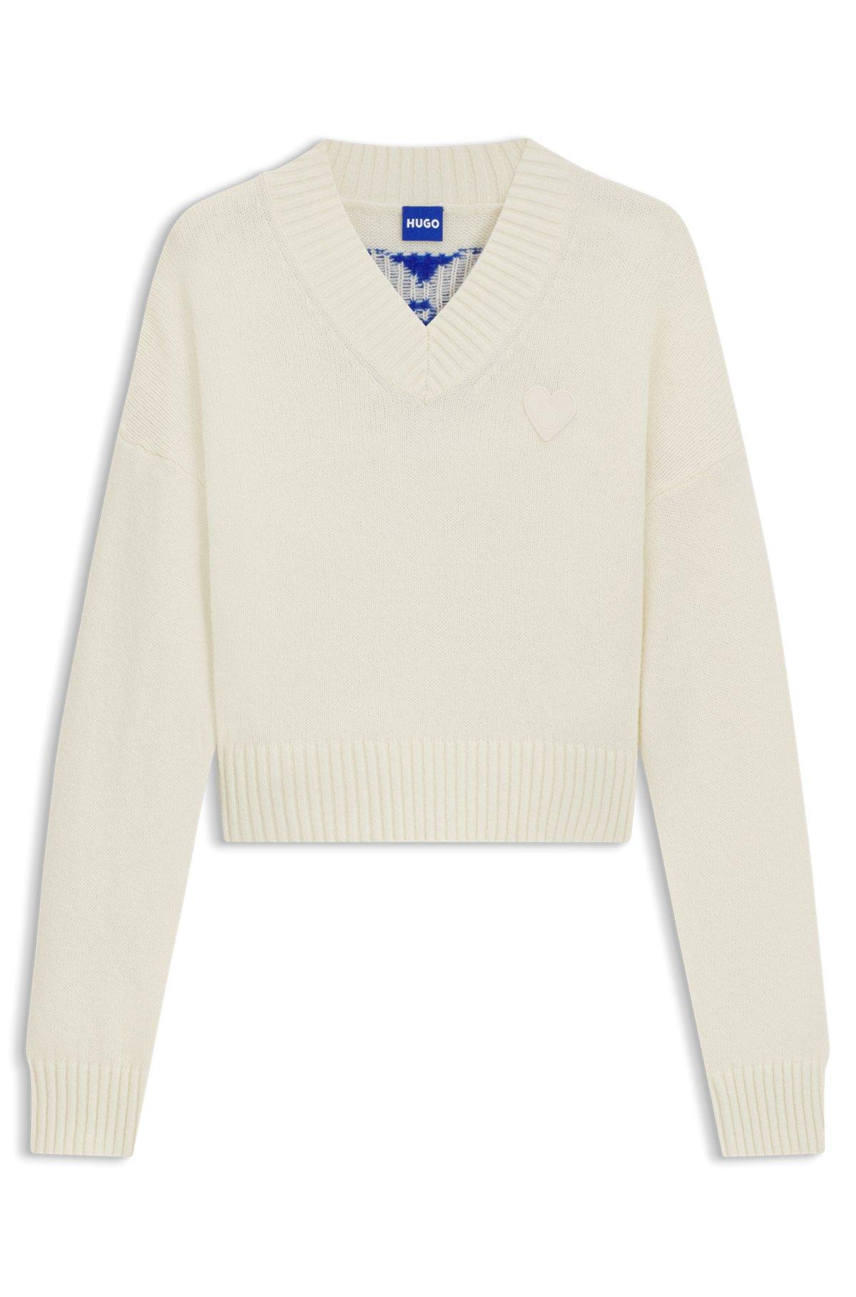 V-neck sweater with Happy HUGO hearts