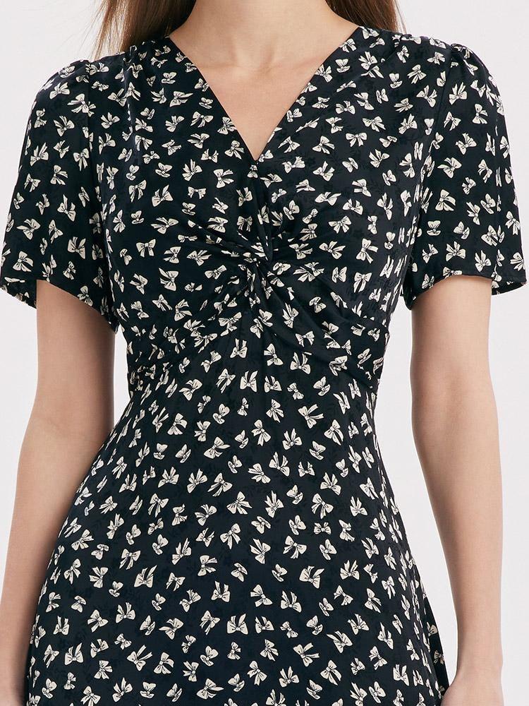 V-Neck Twisted Midi Dress GoodsNo: 1A6H4KAKA • Fit Type: Fit • Elastic: Non-elastic • Thickness: Moderate MaterialsShell: 100%ViscoseSuggest Wash dark and light-colored clothes separatelyWashing • Hand wash • Do not bleach • Do not tumble dry • Drip line dry in the shade • Cool iron • Do not dry-clean
