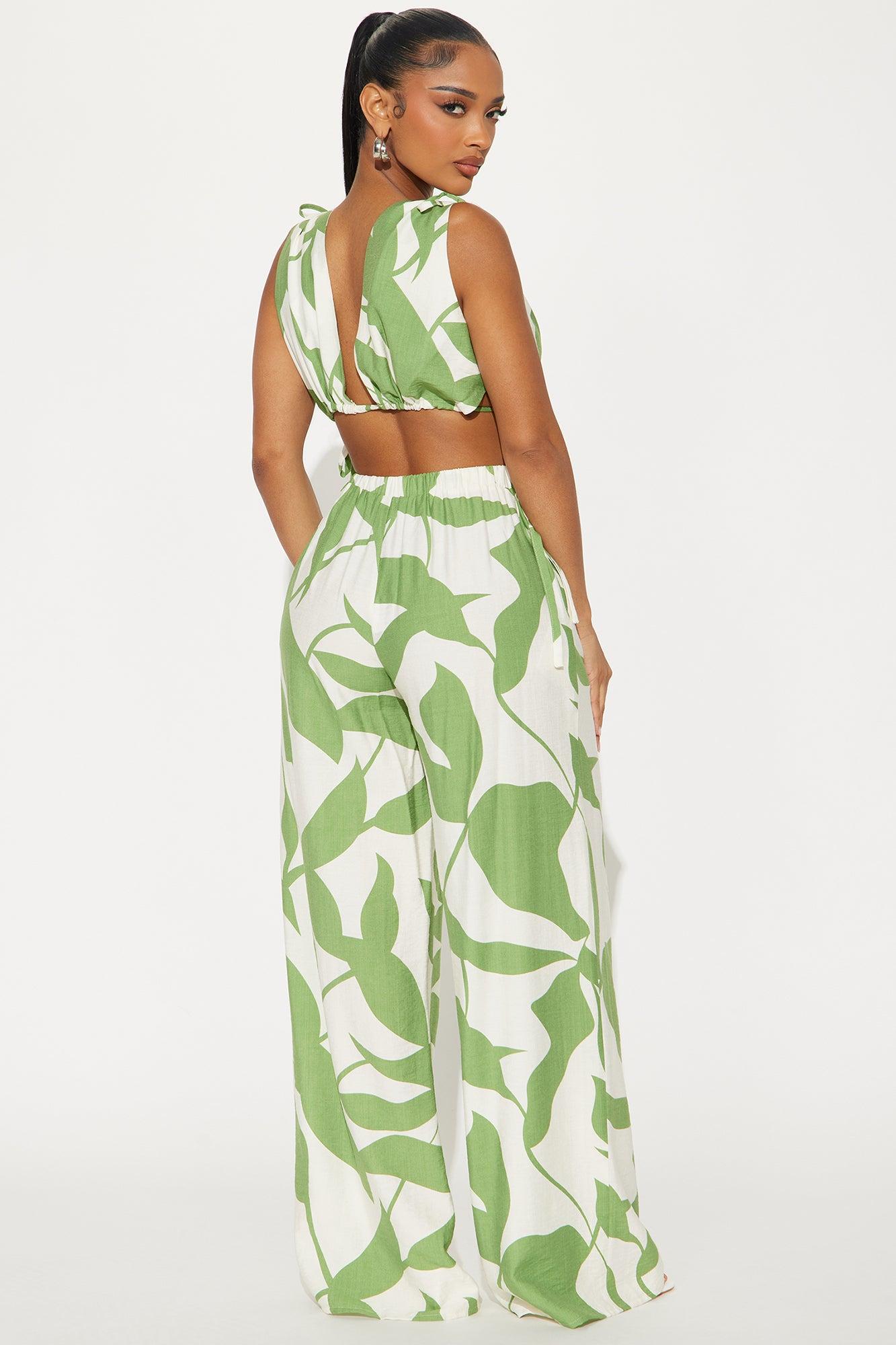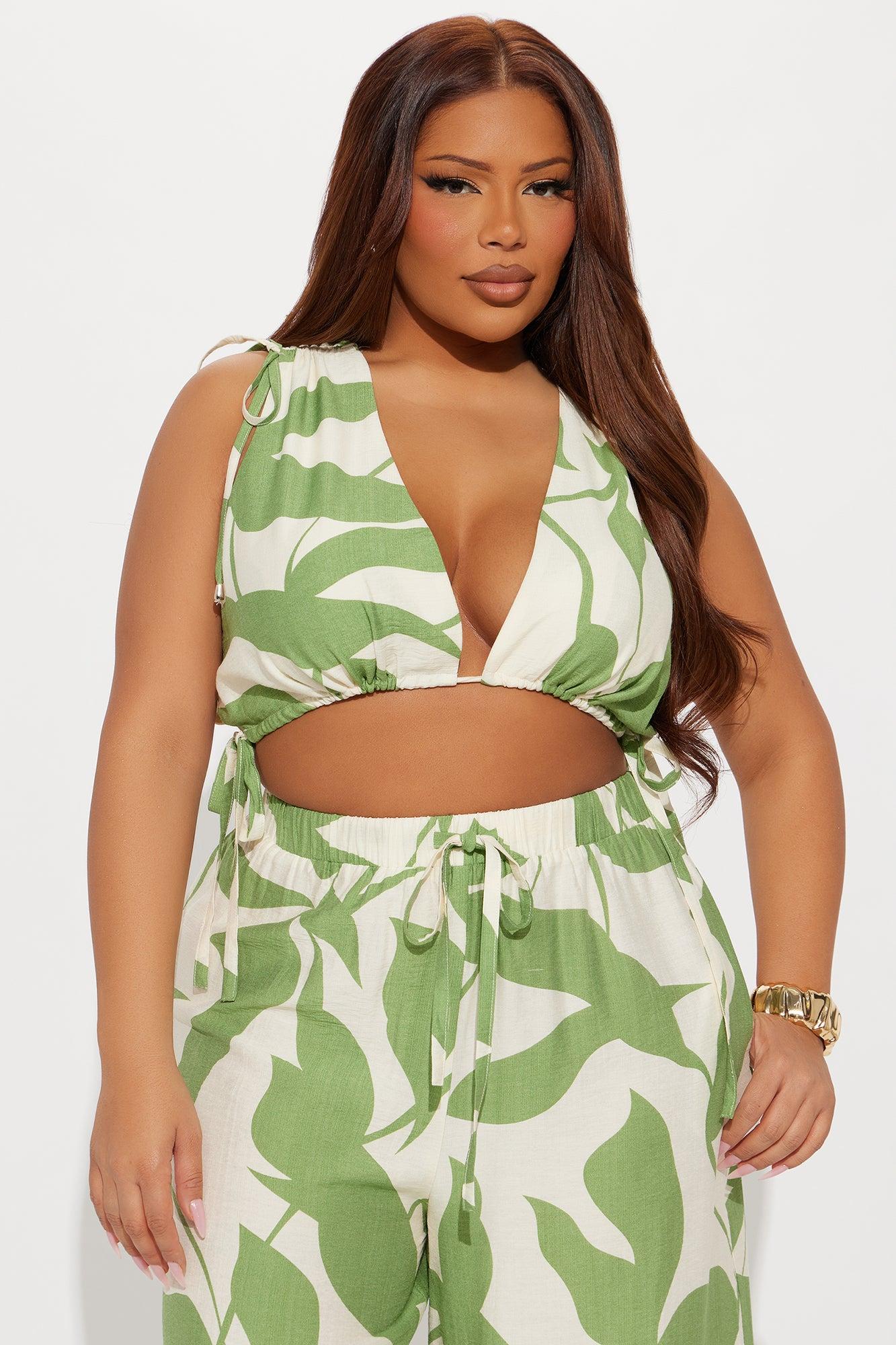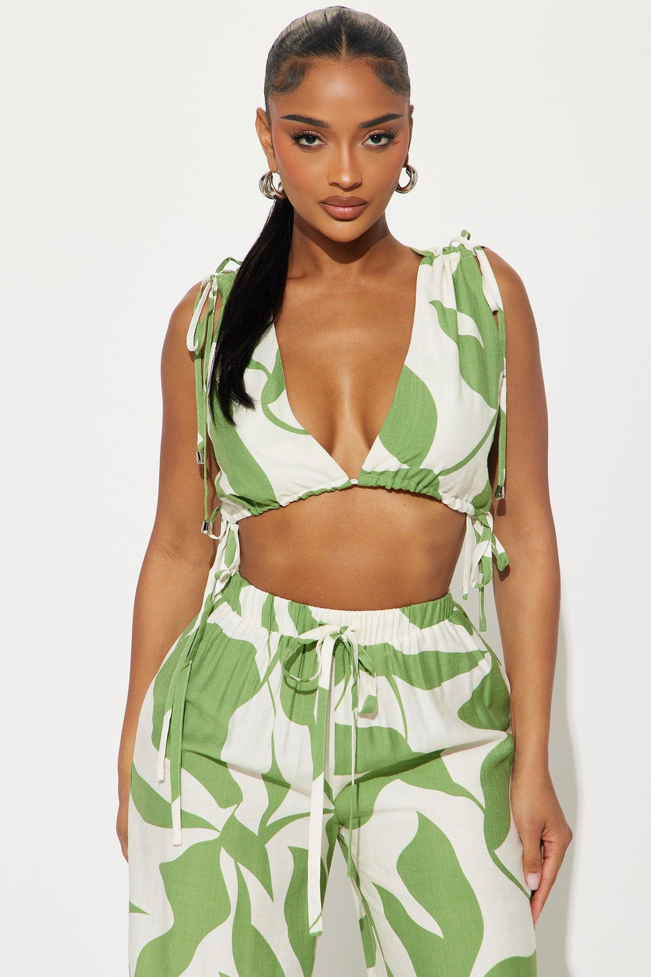 Available In Green/combo. Crop Top And Pant Set Non Stretch Double Lined Top Pockets Elastic Waistband Disclaimer: Print Placement May Vary 80% Rayon 20% Nylon Imported California Proposition 65WARNING: Cancer and Reproductive Harm - www.P65Warnings.ca.gov.