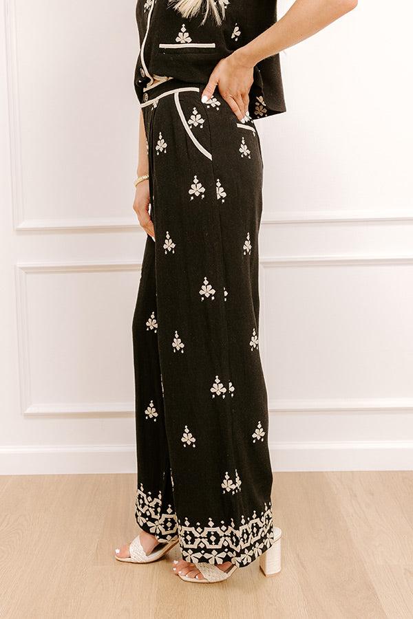 - Keep it stylish with these trendy embroidered wide leg pants, perfect for adding chic touch to any outfit. Their charming design makes them a standout piece made for any time you want to show off your sense of style.