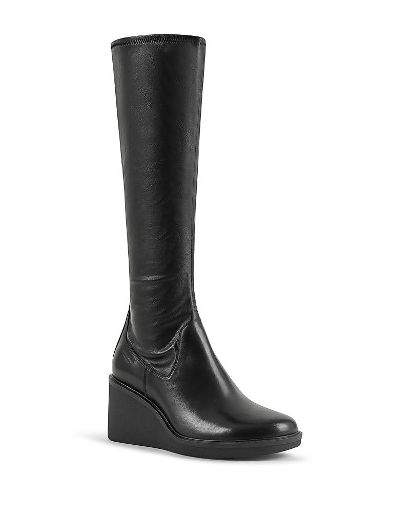 The Vagabond Shoemakers Deena Tall Stretch Boots are set on wedge heels, boasting a marvelous knee-high style. The footwear is crafted from premium leather with a stretchy shaft, round toe shape, and zippered side closure. Leather upper. Cotton lining and leather insole. Leather outsole. Imported. Measurements: Heel Height: 3 in Weight: 2 lbs 11 oz Circumference: 14 1 6 in Product measurements were taken using size EU 37 (US Women's 7), width M. Please note that measurements may vary by size.