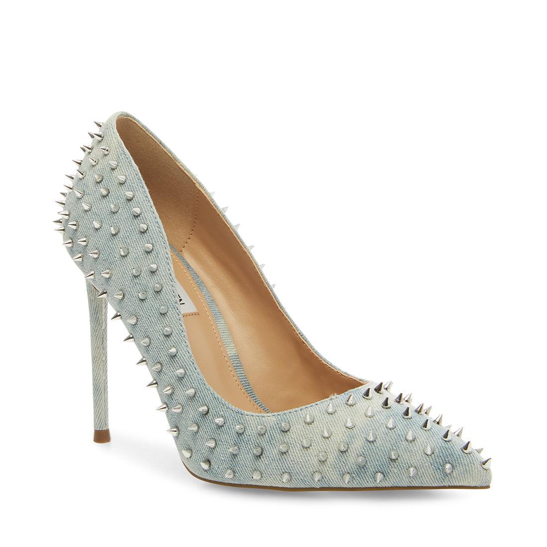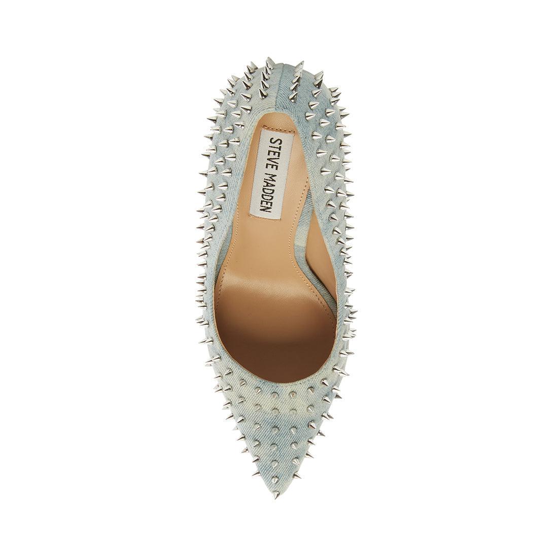 Make a fierce statement day or night donning VALA-S! This sharp pump is covered in metal spikes that accentuate its pointy toe and stiletto heel. Fabric, microsuede, PU, or vinyl upper with studs Synthetic lining Synthetic sole 4 inch heel height Imported Imported