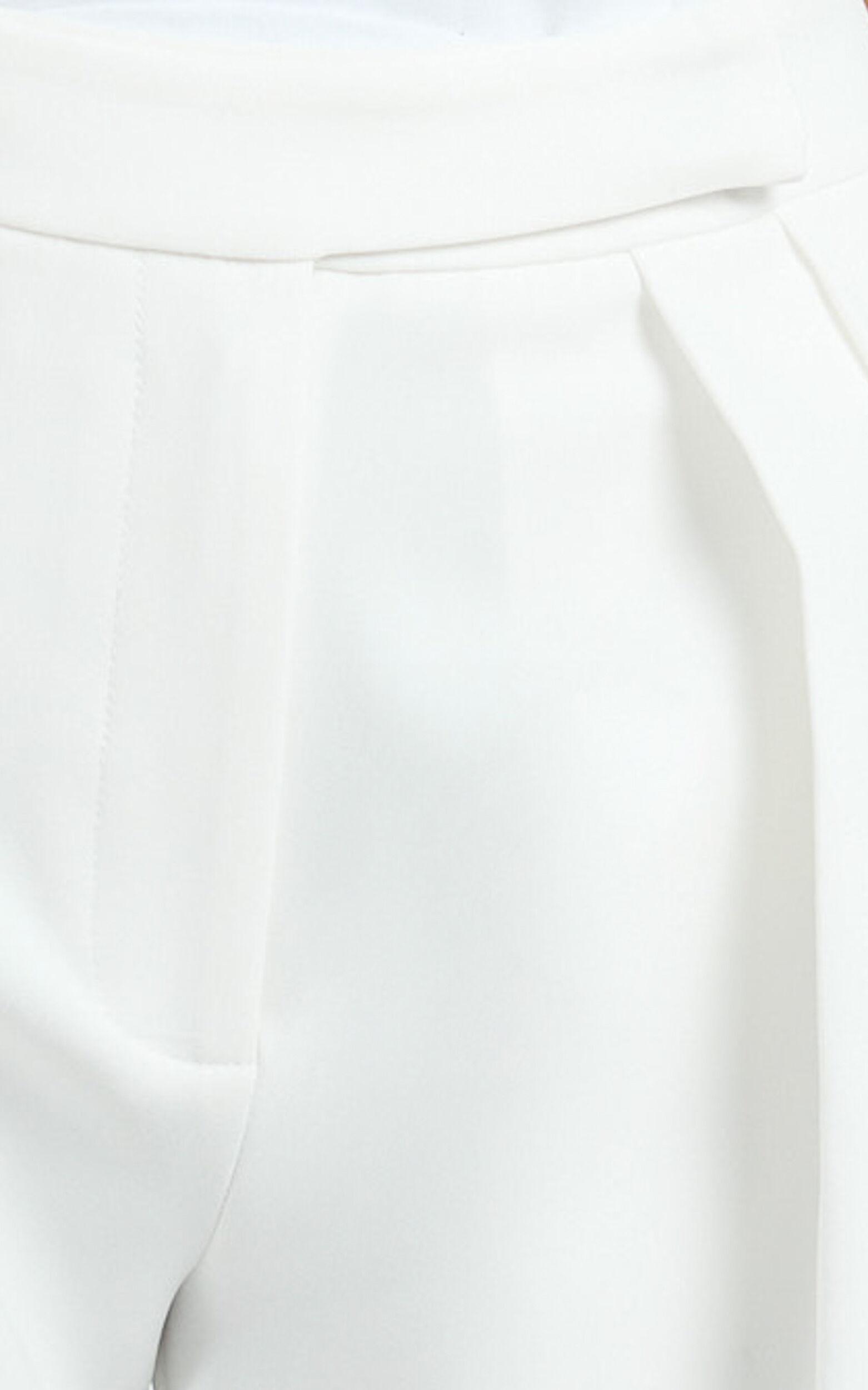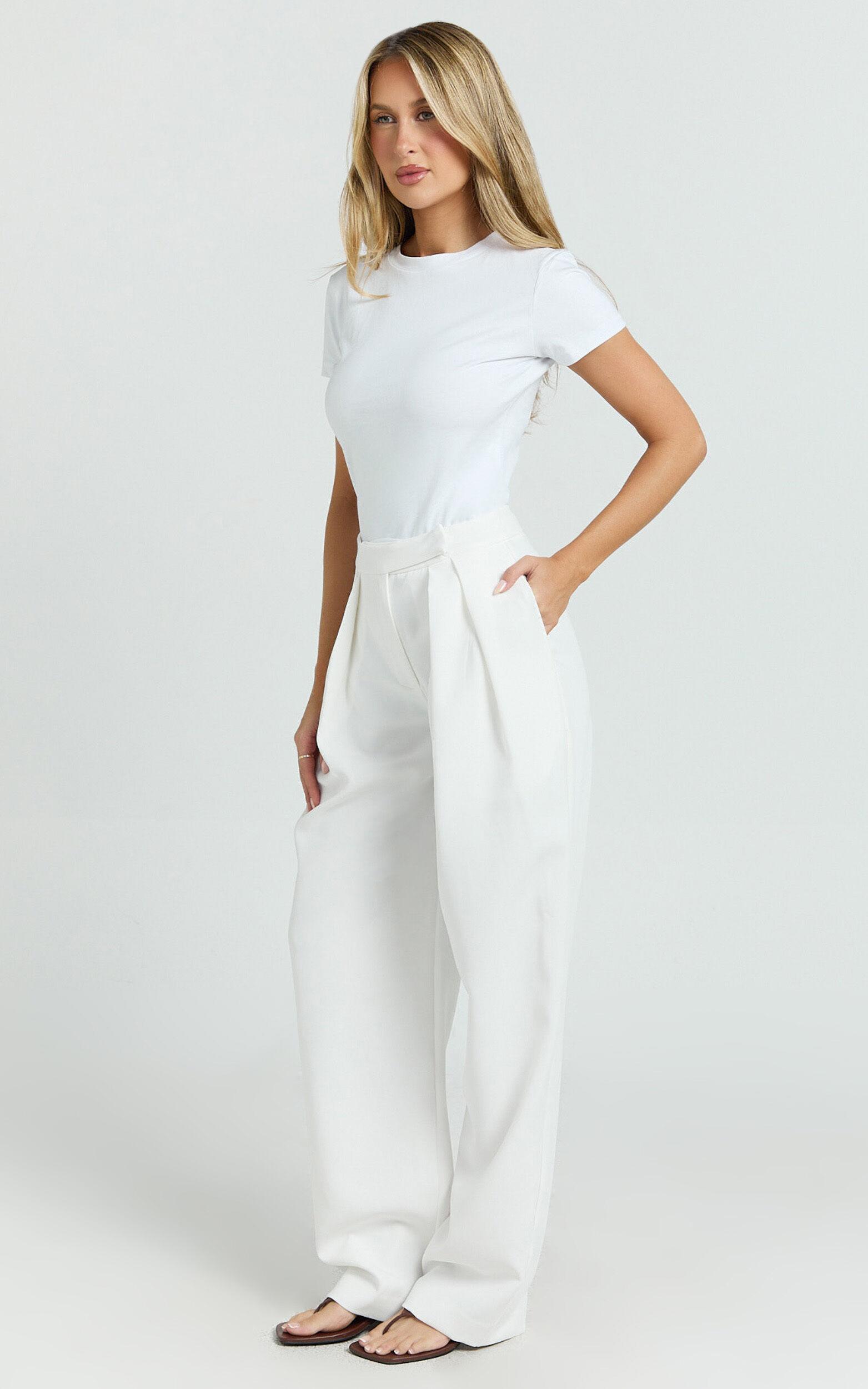 Elevate your party style with our Valencia Pants – High Waist Pleated Tapered Leg Pants in White. Sleek and sophisticated, these full length pants are made from a mid-weight woven polyester that hugs in all the right places while keeping their structure, so you can slay any event with confidence. The tapered leg creates a flattering silhouette for every body, while pleated details add a chic, tailored edge. Perfect for dressing up with strappy heels or keeping it cool with sneakers, these versatile pants are your new go-to for everything from brunch catch-ups to night-out plans. Own your style and celebrate your shape in the Valencia – the ultimate staple for every wardrobe.Product Details:Tapered party pantsHigh waist fitFull length cutZipper closureMid weight wovenPolyester fabricSize and FitSize S / 8 length: 115cm / 45.28inStudio model is wearing size XS / 6 AU / 2 US / 6 UK / 34 EUStudio model's height is 170cm / 5'7''Material and Care90% Polyester, 10% RayonNo Stretch