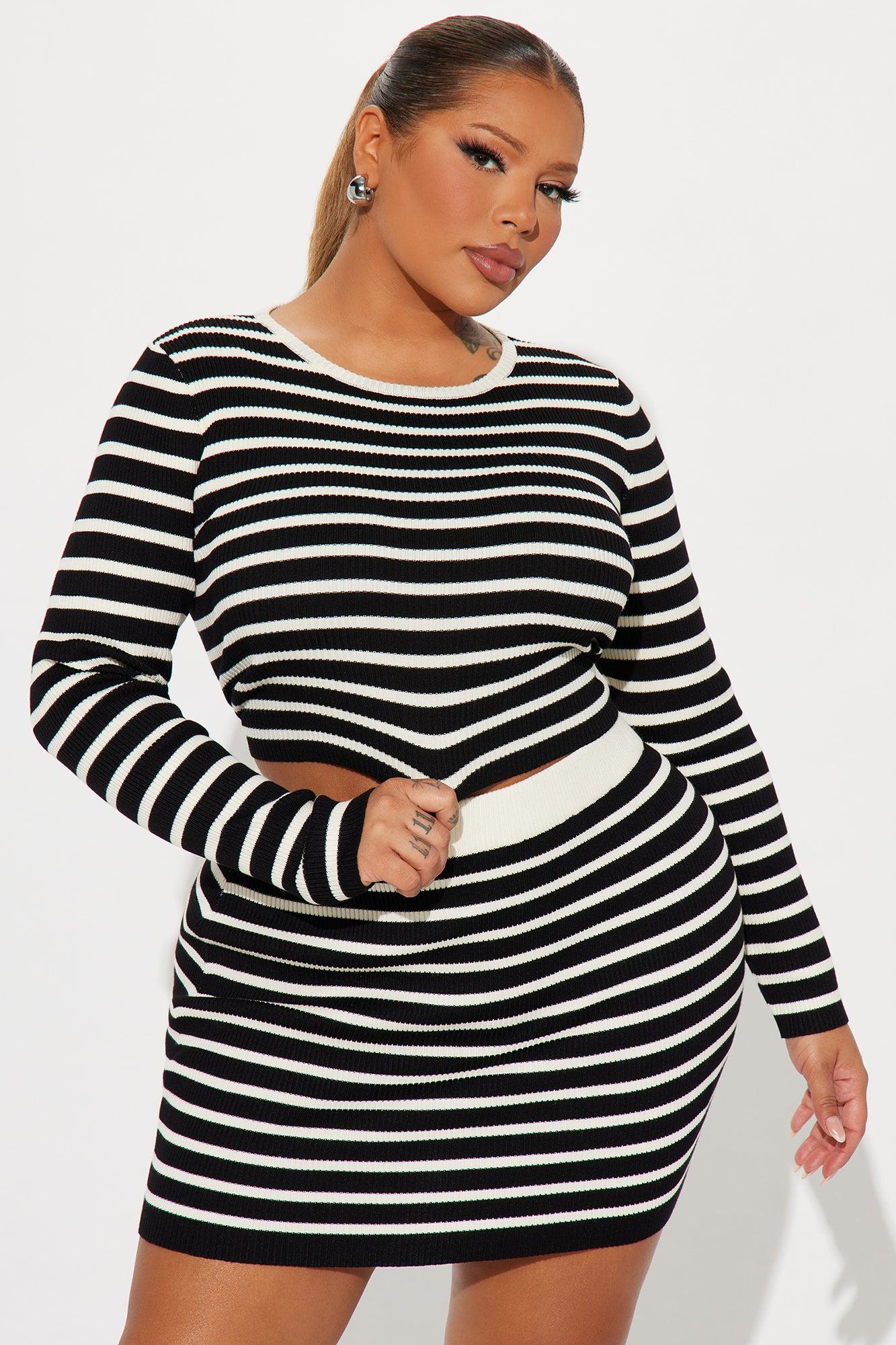 Available In Black/combo. Sweater Skirt Set Long Sleeve Top Open Back Mini Skirt Elastic Waistband Stretch 69% Rayon 31% Polyester Imported
