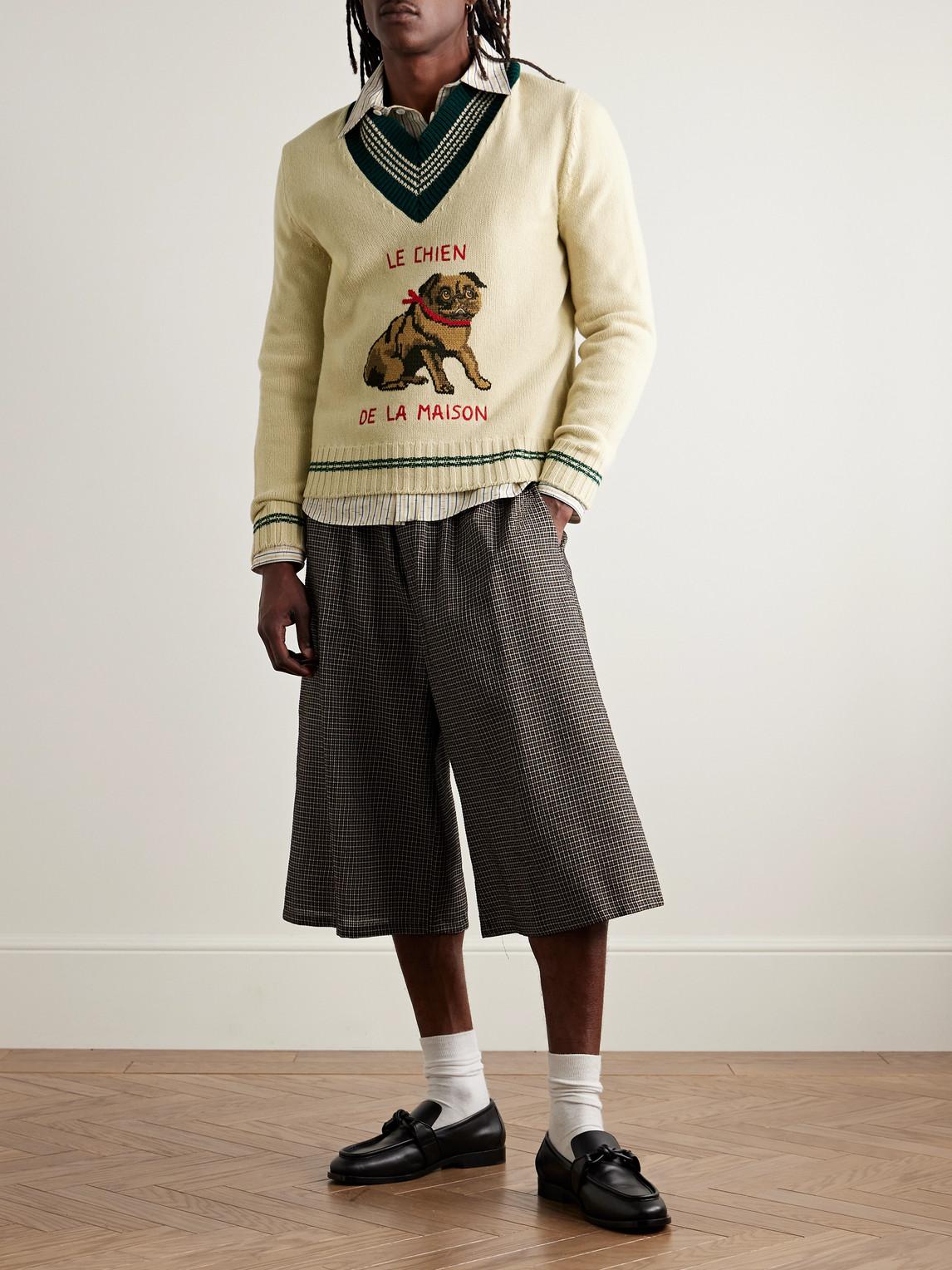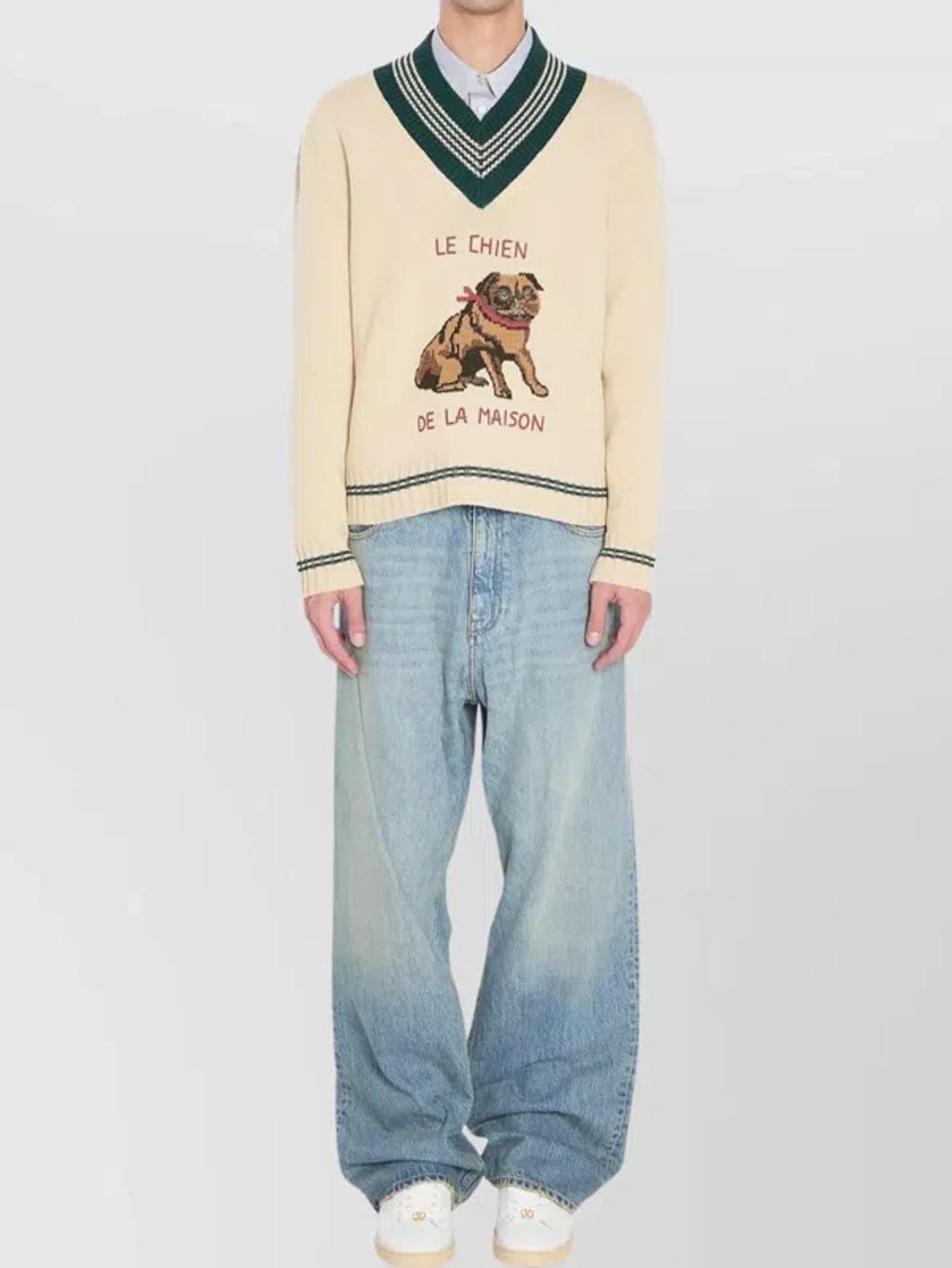 Shop Valentino Embroidered V-neck Crewneck Sweater With Ribbed Trim In White from 800+ stores, starting at $1064. If there's one thing that's at the heart of Valentino, it's an aptitude for playfulness and a prevailing love for nature, so the label's Le Chien de La Maison motif should come as no surprise. An evolution of its Le Chat de La Maison style, which instead features felines, it's decorated with a well-dressed pup sitting front and centre.