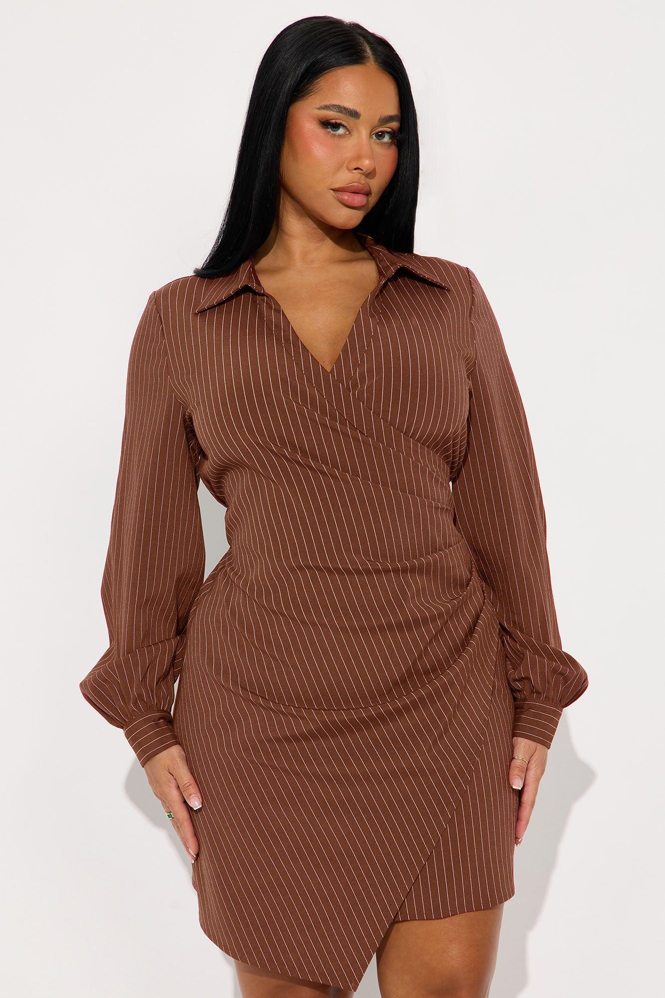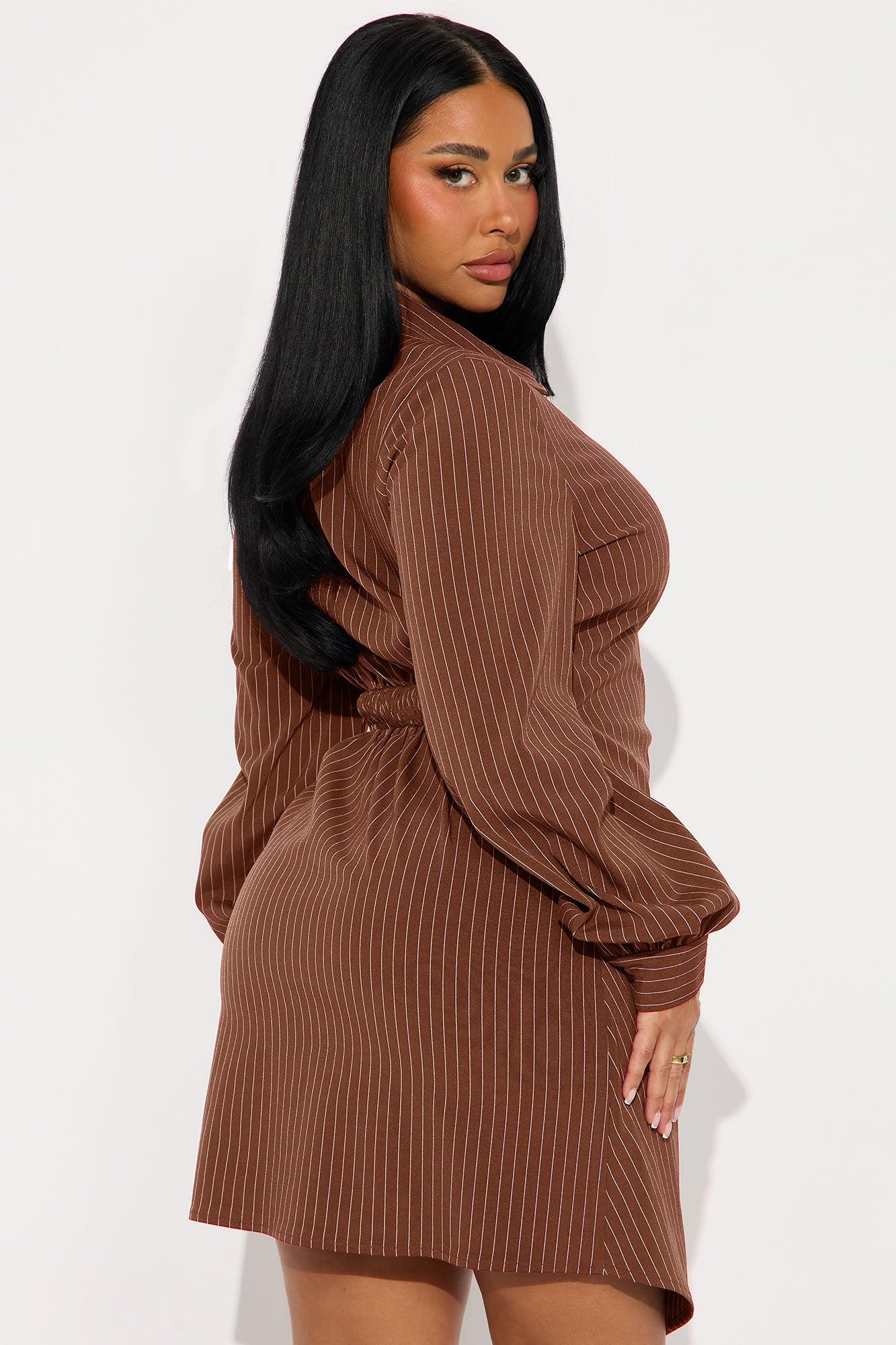 Valeria Pinstripe Mini Dress - Brown