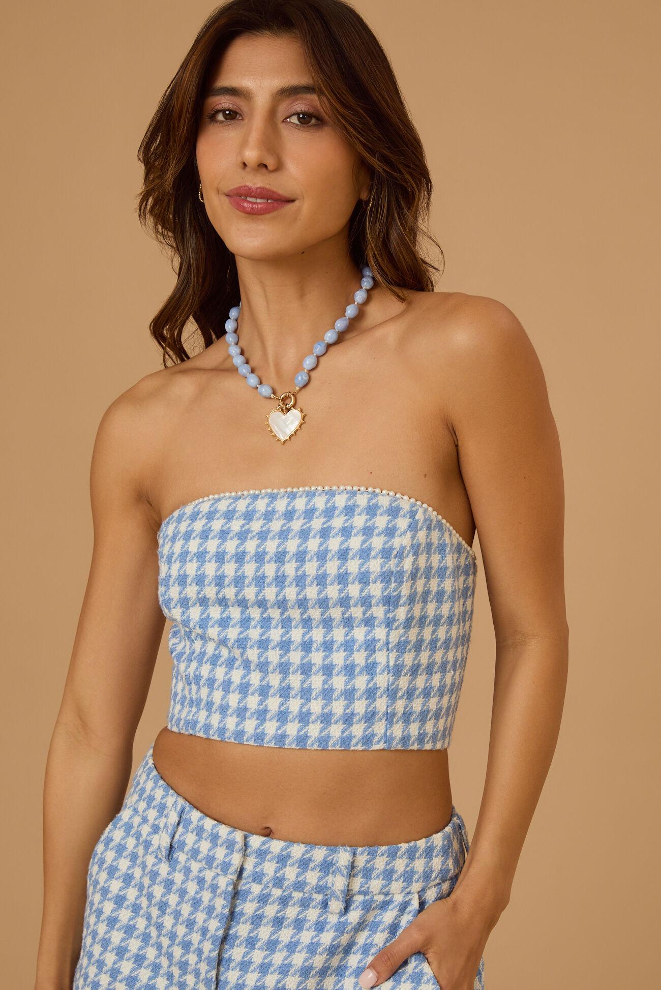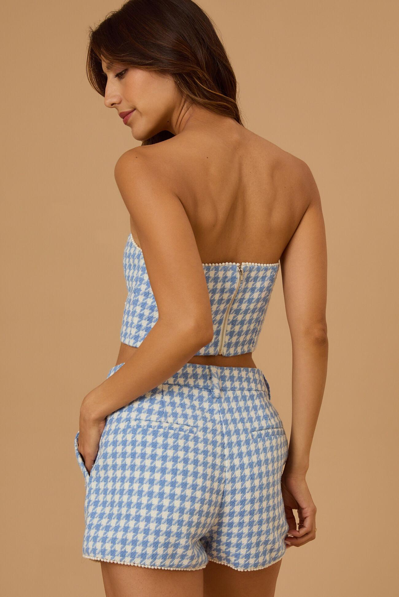 Make a statement in this luxurious tweed top. The hounds tooth print provides a sophisticated look, and the pearl trim adds an element of glamour. The comfortable fit and high-quality construction ensure you'll look and feel your best. Pair with the matching shorts for a perfectly coordinated ensemble.