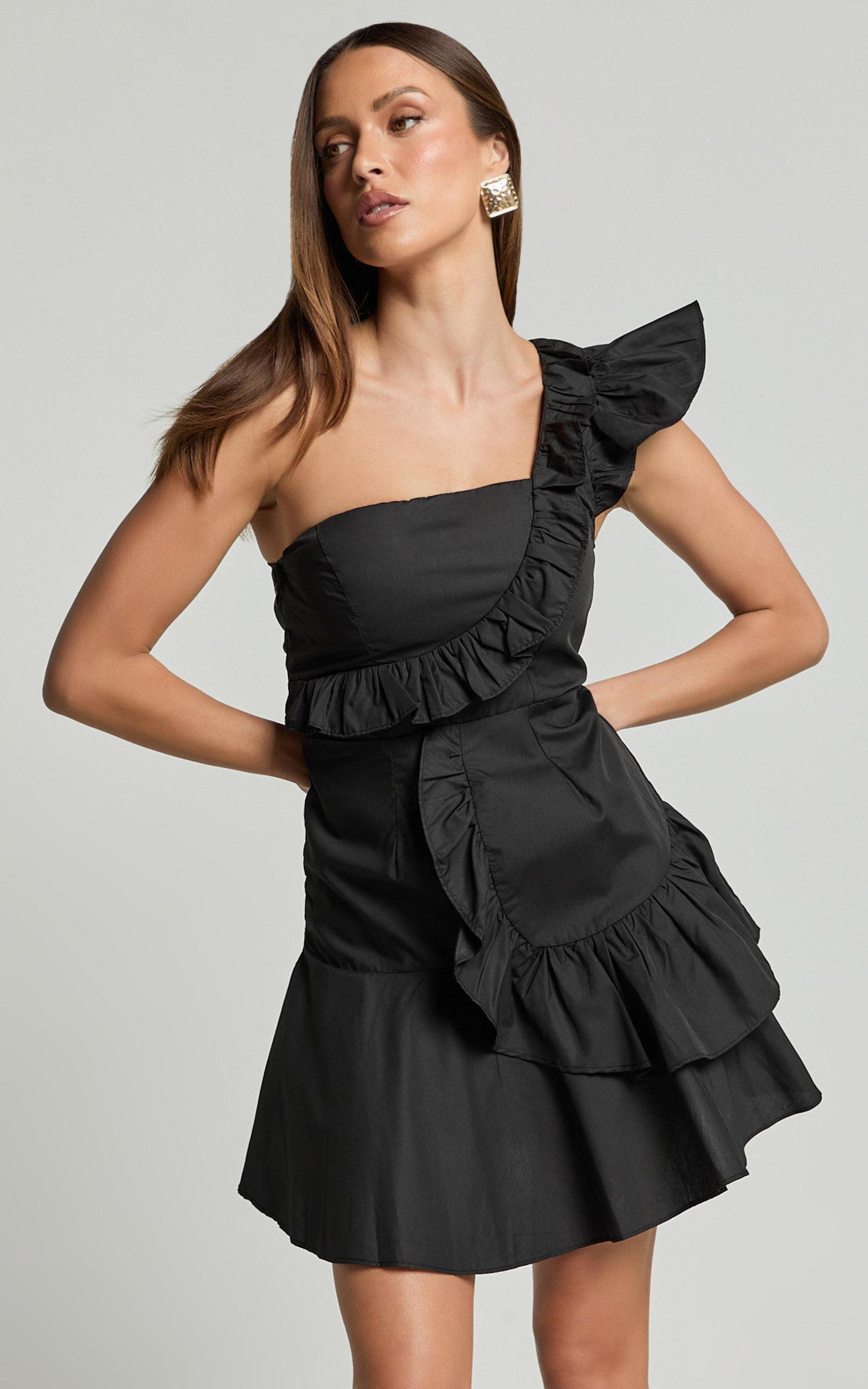 Discover the perfect look in our Valerie Mini Dress, where elegance meets edgy in an ensemble designed for your every party day and standout moment. With its chic one-shoulder design and playful ruffle detail, this A-line dress in classic black is a wardrobe essential that speaks to the confident, fashion-forward Gen Z and Millennials who know that style is not just what they wear, but a reflection of their unique identity and voice.Product Details:A Line DressCotton PolyesterOne ShoulderParty PerfectMini LengthMaterial and Care100% PolyesterLow / No stretch