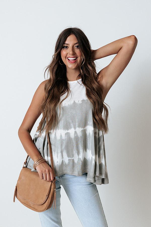 Our trendy 'Valley Accent' top is to 'dye' for with its soft lightweight and flowy material, grey tie dye pattern, a rounded neckline with wide sleeveless shoulder straps, and a relaxed shift silhouette that falls into an uneven hemline! Measurements S : Bust 36", Hip 50", Length 24", Waist 40". M : Bust 38", Hip 52", Length 24.5", Waist 42". L : Bust 40", Hip 54", Length 25", Waist 44".