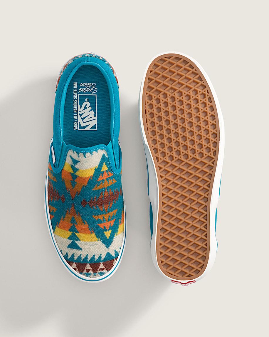 Van Doren Approved X All Nations Classic Slip-On Shoe in Turquoise Blue| Vans US