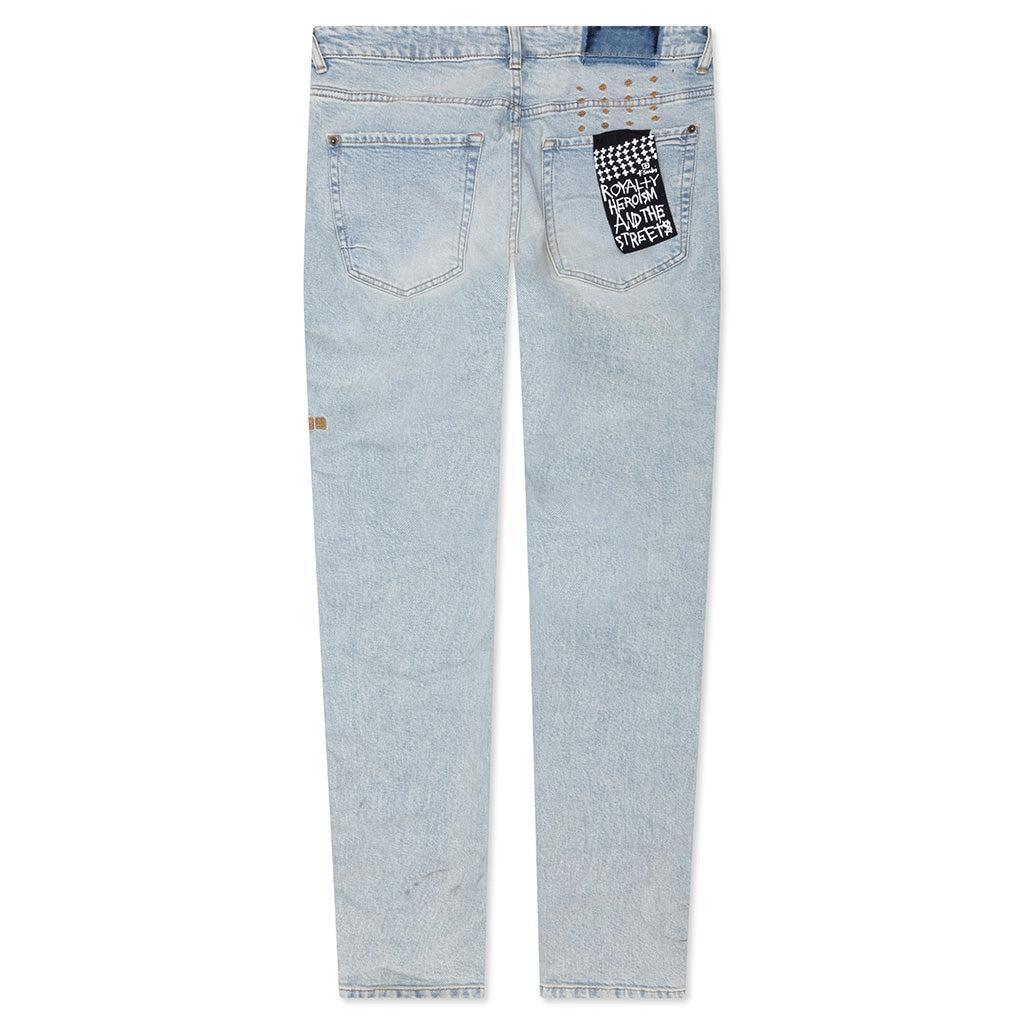 The Ksubi Van Winkle Paragon 1999 Pants are mid-rise skinny jeans crafted from European comfort-stretch indigo denim with a heavy vintage-inspired stone wash. Featuring angled belt loops, a front fly seam, and subtle aging treatments, this full-length style is detailed with a laser-etched ‘1999’ logo at the left knee. Finished with signature T-box and 4x4 cross embroidery, ghost patching, and branded hardware. 99% Cotton, 1% Elastane Skinny leg fit Full length Mid rise Five-pocket construction Fixed waistband Angled belt loops Ksubi branding Back 4x4 cross embroidery Style No: MSP25DJ003-098