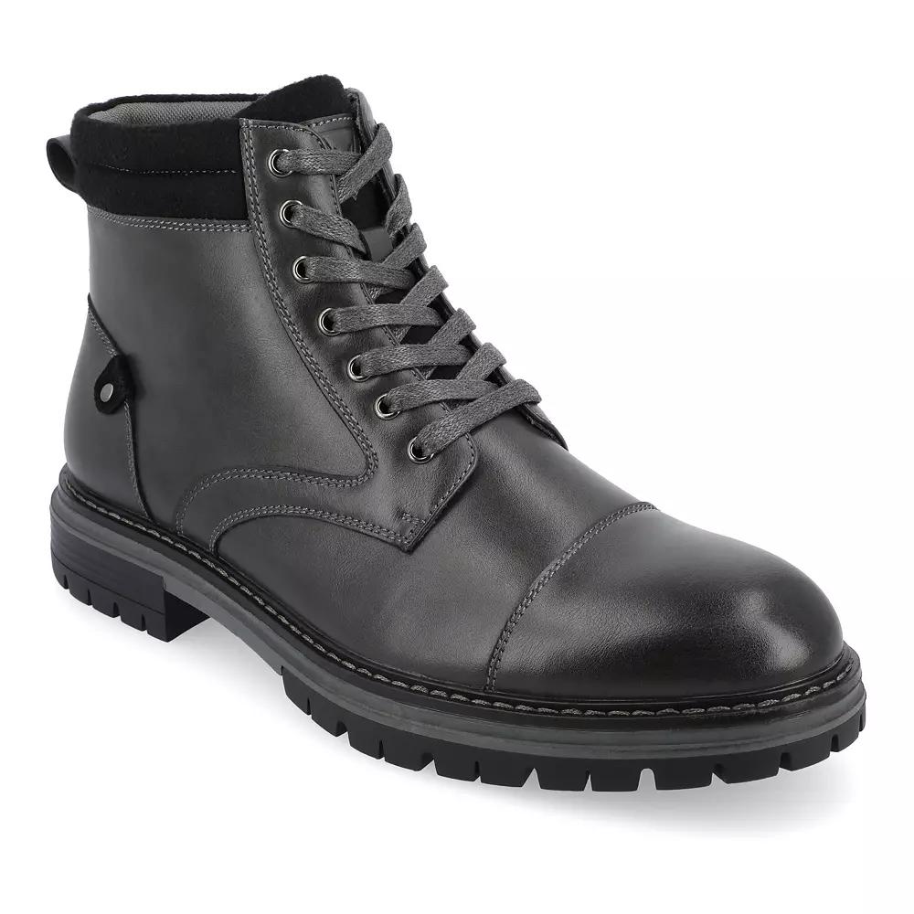 Introducing the Fegan ankle boot by Vance Co. These stylish boots are made with durable vegan leather for a polished look. Featuring a 12 mm tru comfort foam insole, they offer excellent cushioning and support for all-day comfort. With a lace-up design, 1 1/4-inch flat heel, cap-toe shape, and padded tongue and collar for extra comfort, these classic and basic boots are versatile and practical.Features: ComfortClosure Type: Lace-UpFootwear Technology: Memory Foam InsoleShaft Circumference: 10 InchesBoot Shaft Height: 5 InchesShoe Heel Height: 1 1/4 InchesUpper/Outer Base Material: 100% PolyuretheneShoe Lining Material: PolyesterSole Material Content: 100% RubberToe Type: Closed Toe, Cap ToeHeel Style: Flat HeelCountry of Origin: Imported