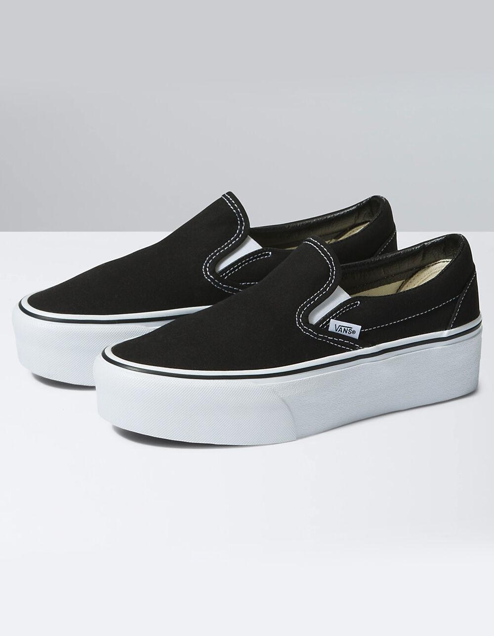 Vans Classic Slip-On Stackform Shoes. The Classic Slip-On Stackform refreshes our original slip-on silhouette with an even chunkier take on the platform aesthetic. Constructed with a 34 mm sidewall height, this platform shoe elevates a classic favorite while bringing a new “Off The Wall” style to your look. Along with sturdy canvas uppers, the Classic Slip-On Stackform is finished with traditional elastic side accents, supportive padded collars, and signature rubber waffle outsoles. Imported.