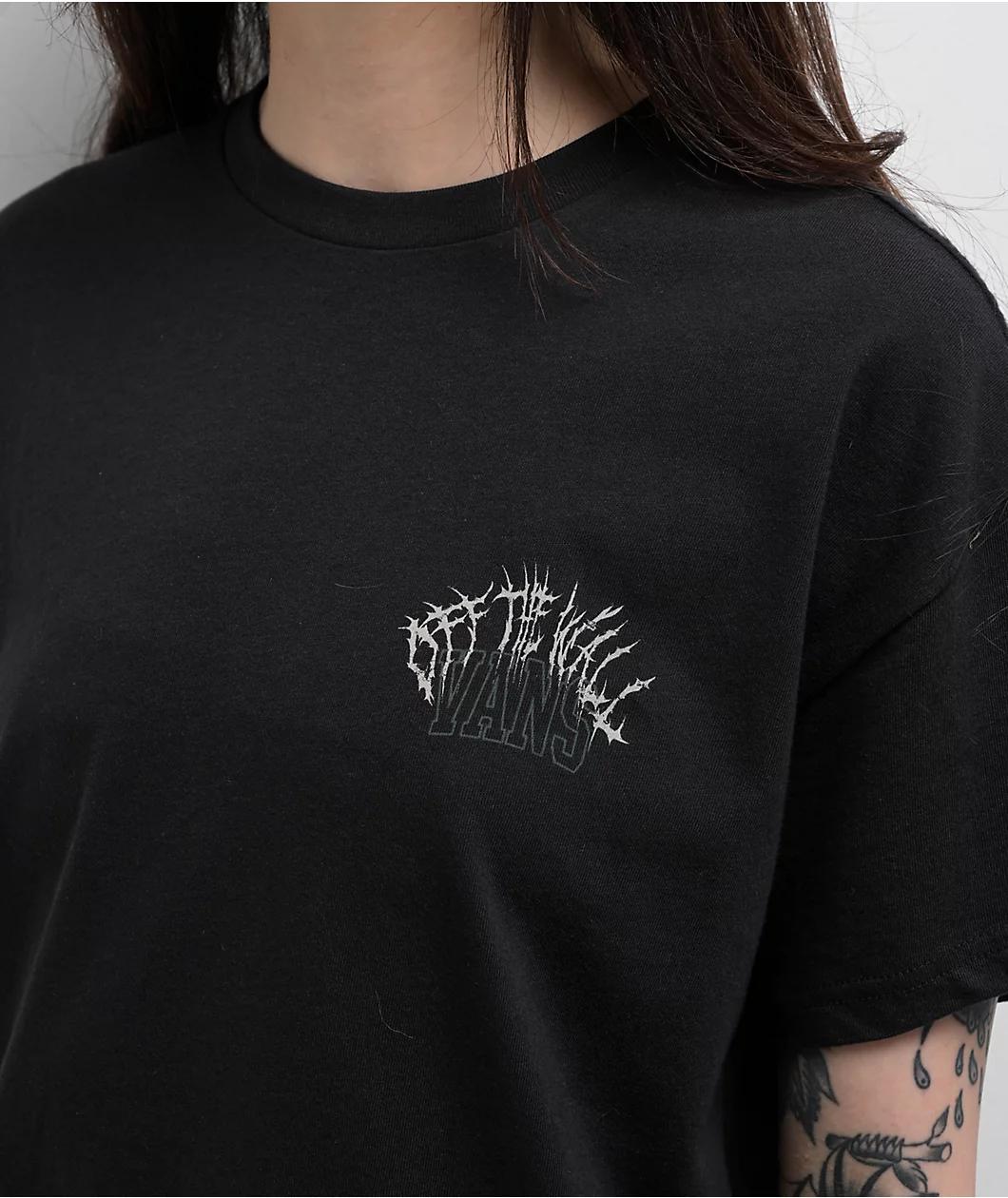 Add a bold alternative vibe to any outfit with the oversized Metal University t-shirt from Vans. Cyber sigilsim Off The Wall branding decorates the back and left chest, with the left chest also featuring a collegiate logo. The boyfriend fit creates a