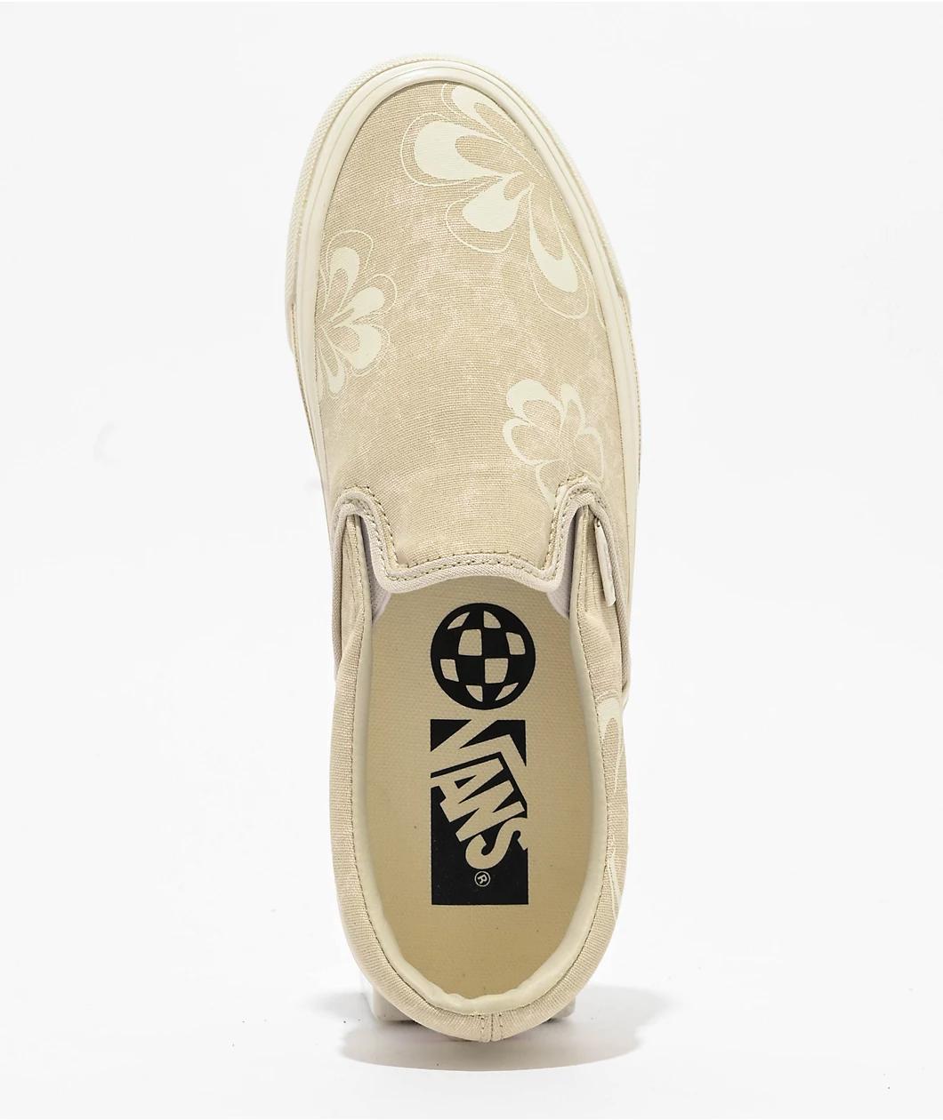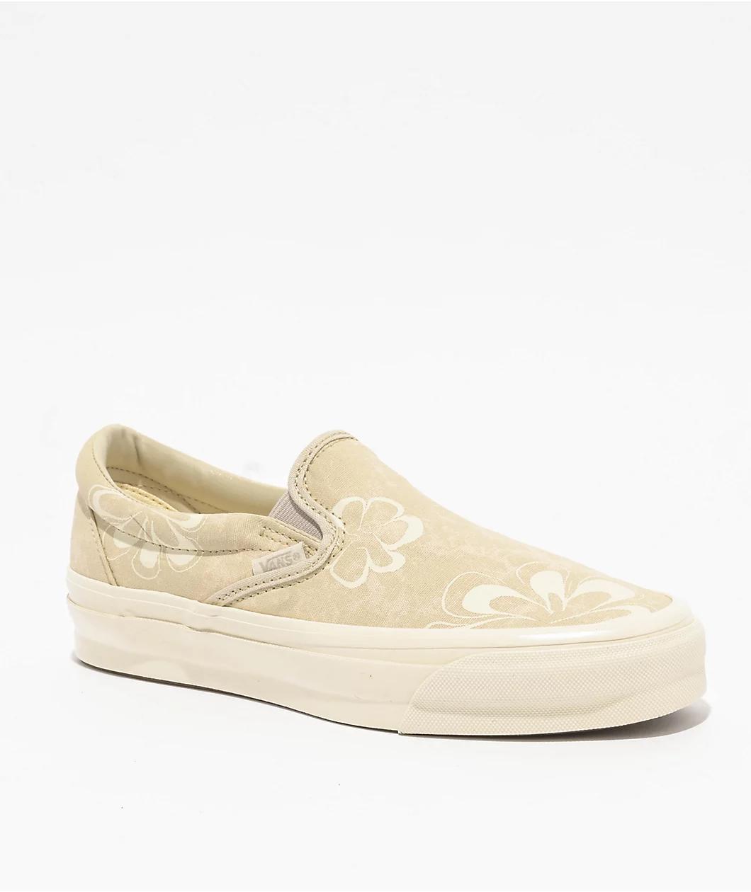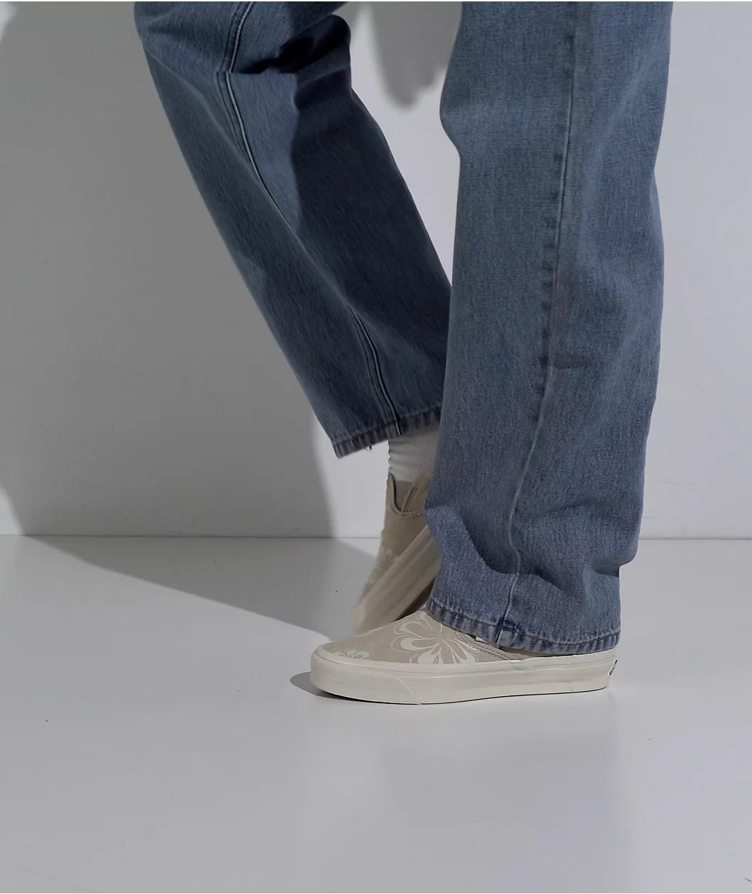 Vans Reissues the 1998 MTE Slip-On skate shoes in a "Floral Stain Vintage" white colorway. Delivering a timeless look, the canvas upper is embellished with screen-printed Floral print, while subtle but noticeable branding adorns the silhouette. These