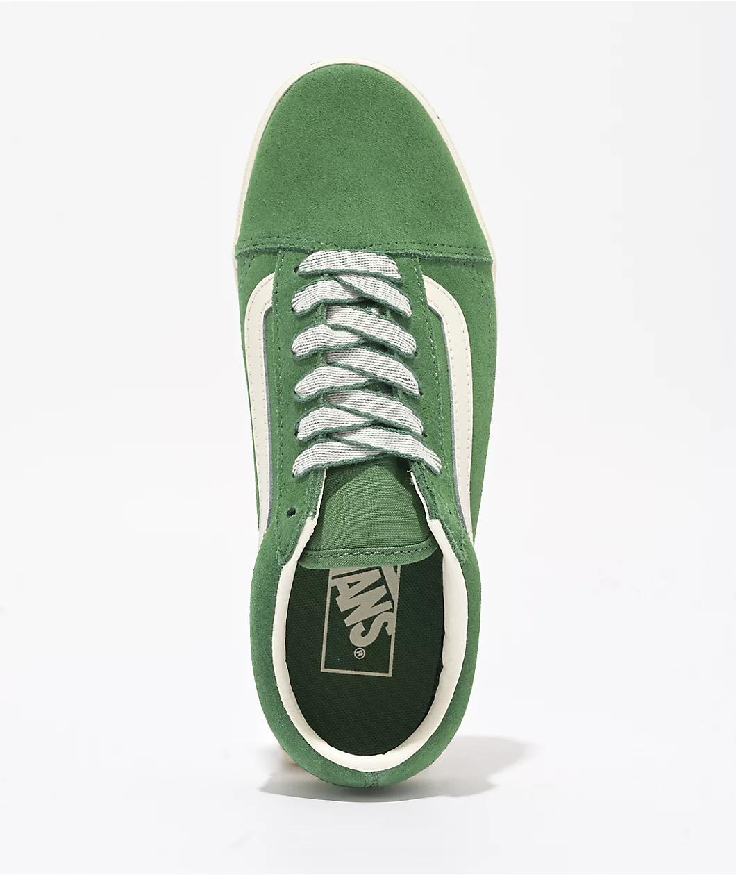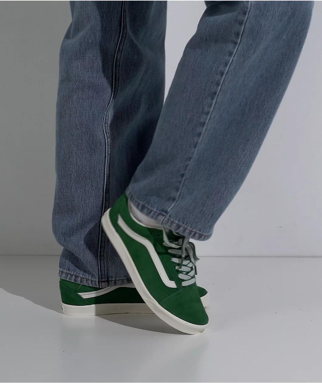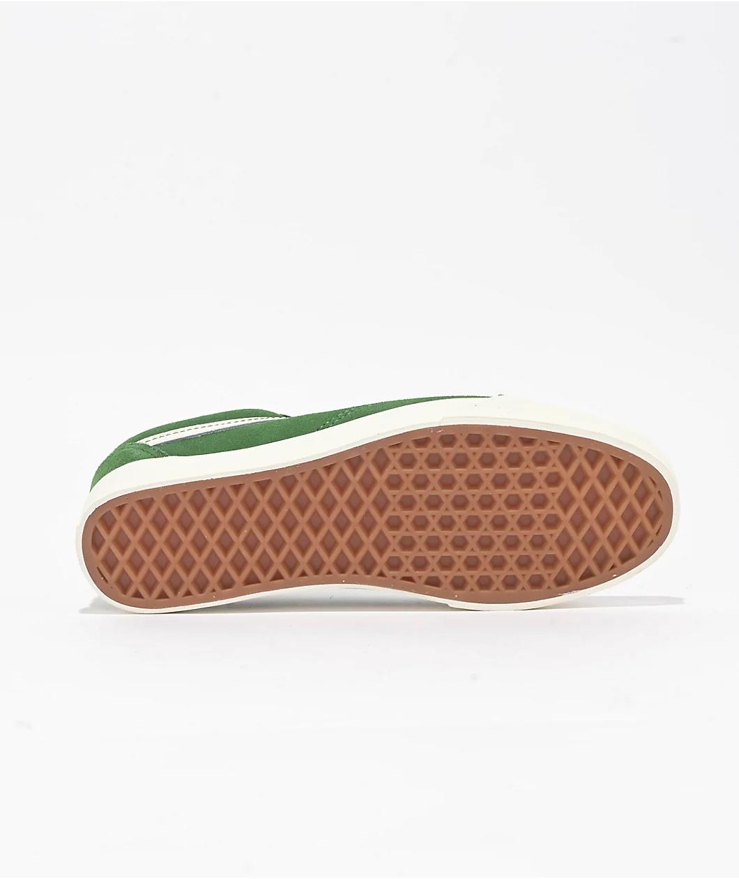 The Outlines Fairway Old Skool Lowpro skate shoe from Vans employs a green suede upper to mimic the color of a well-maintained golf course. The low-top sneaker delivers a staple look with contrasting white accents including the iconic Sidestripe