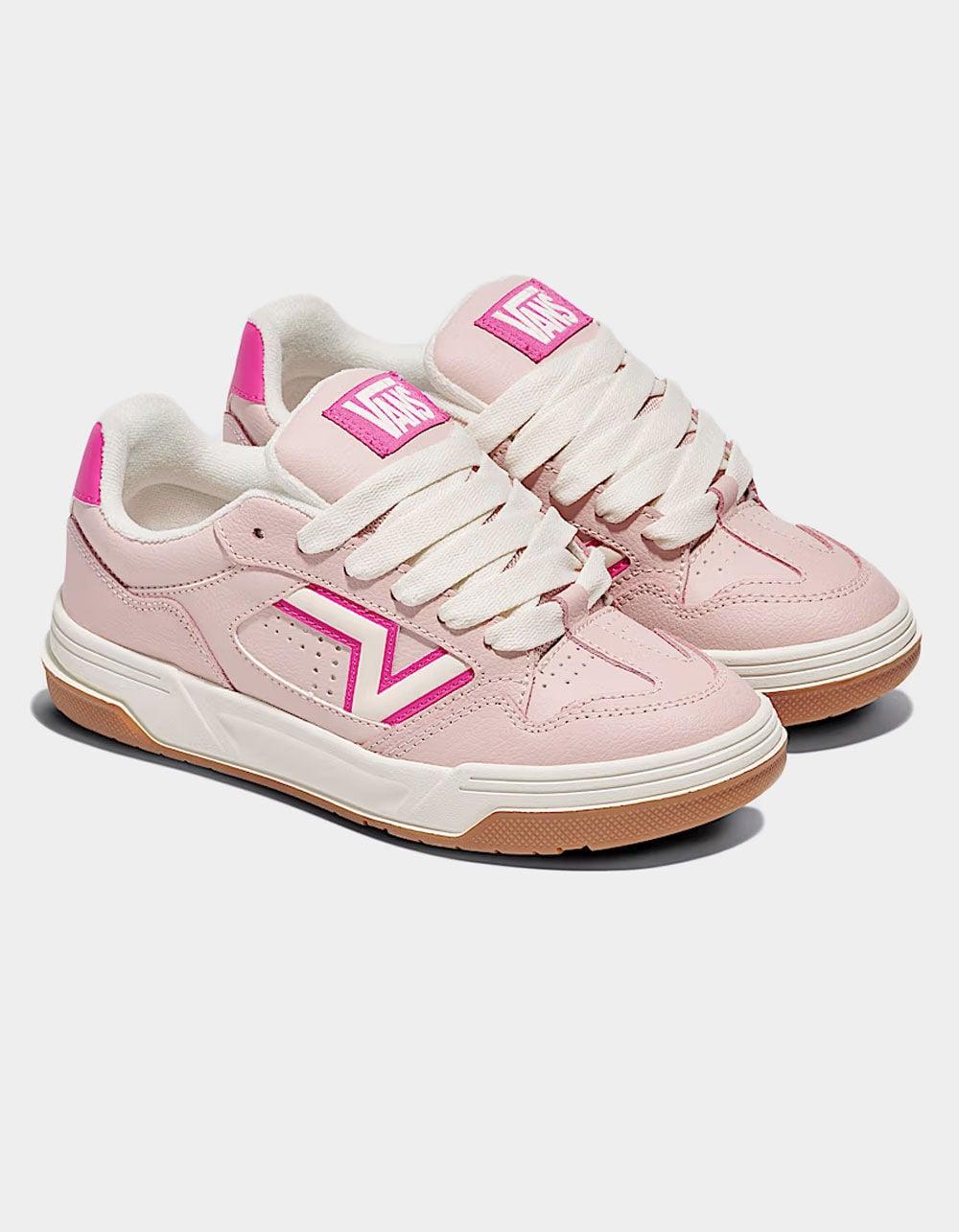 Vans Upland Shoes. Straight from 2000. With a puffy upper, chunky laces and comfort-focused upgrades. The retro-inspired outsole design provides a chunky stance and underfoot support, while the elevated upper materials and molded “V” logo pair for an iconic yet modern look. Finished with oversized laces and bold logo branding at the tongue and heel, the Upland will transport you, from our past to your future. Reimagining of the original Upland silhouette. Durable leather and synthetic uppers for style and strength. Puffy collar and padded tongue bring extra support. Wide laces for bold style and adjustable fit. heritage "Flying V" logo nods to the Upland's heritage. Imported.