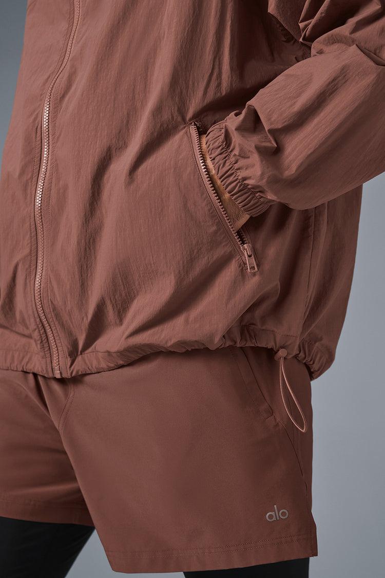 Light coverage and serious protection—that’s the Vantage Track Jacket. It has technical features like a structured hood, a full-zip front that covers the neck, cuffed sleeves, and a bungee hem that’s slightly longer in back. Fitwise, it feels cool and modern with dropped shoulders and a loose body. Wear it for running, training, or stepping outside in brisk weather.