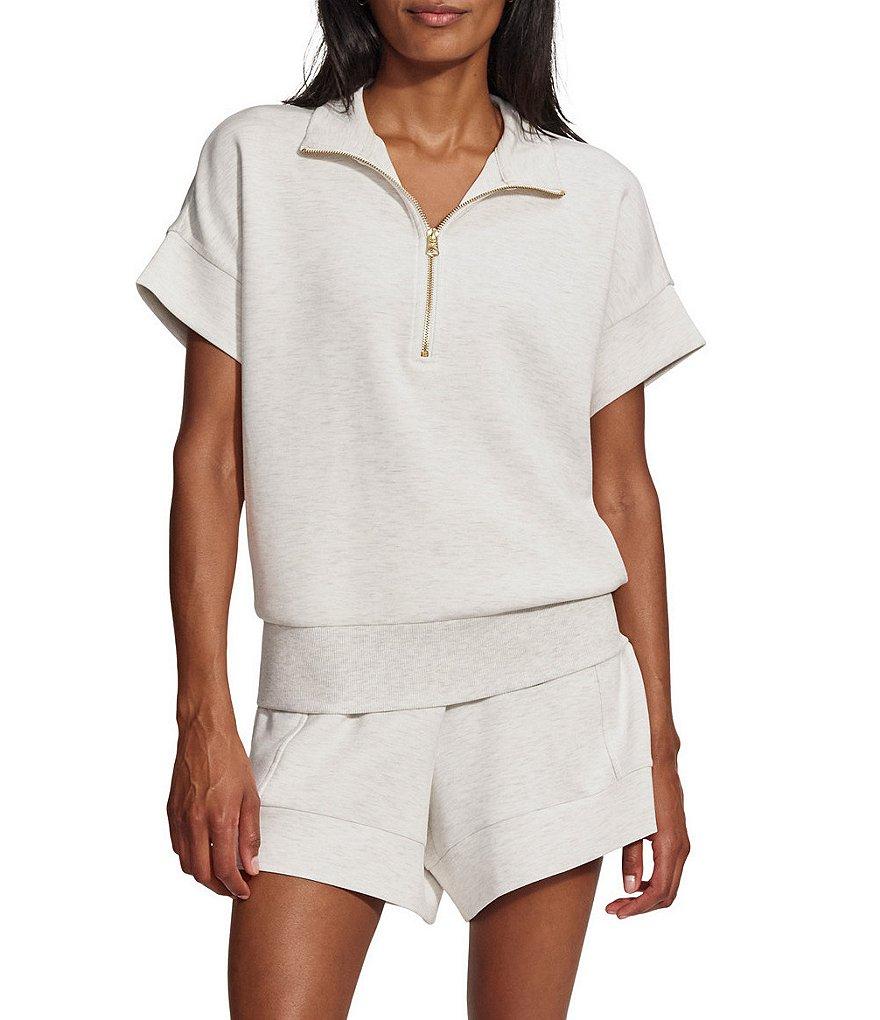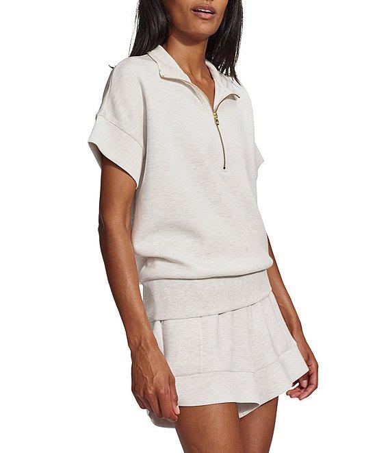 From Varley, this sweatshirt features: Mock neckline Half-zip detail Short sleeves Pullover construction Viscose/polyester/elastane Machine wash/dry flat Imported.
