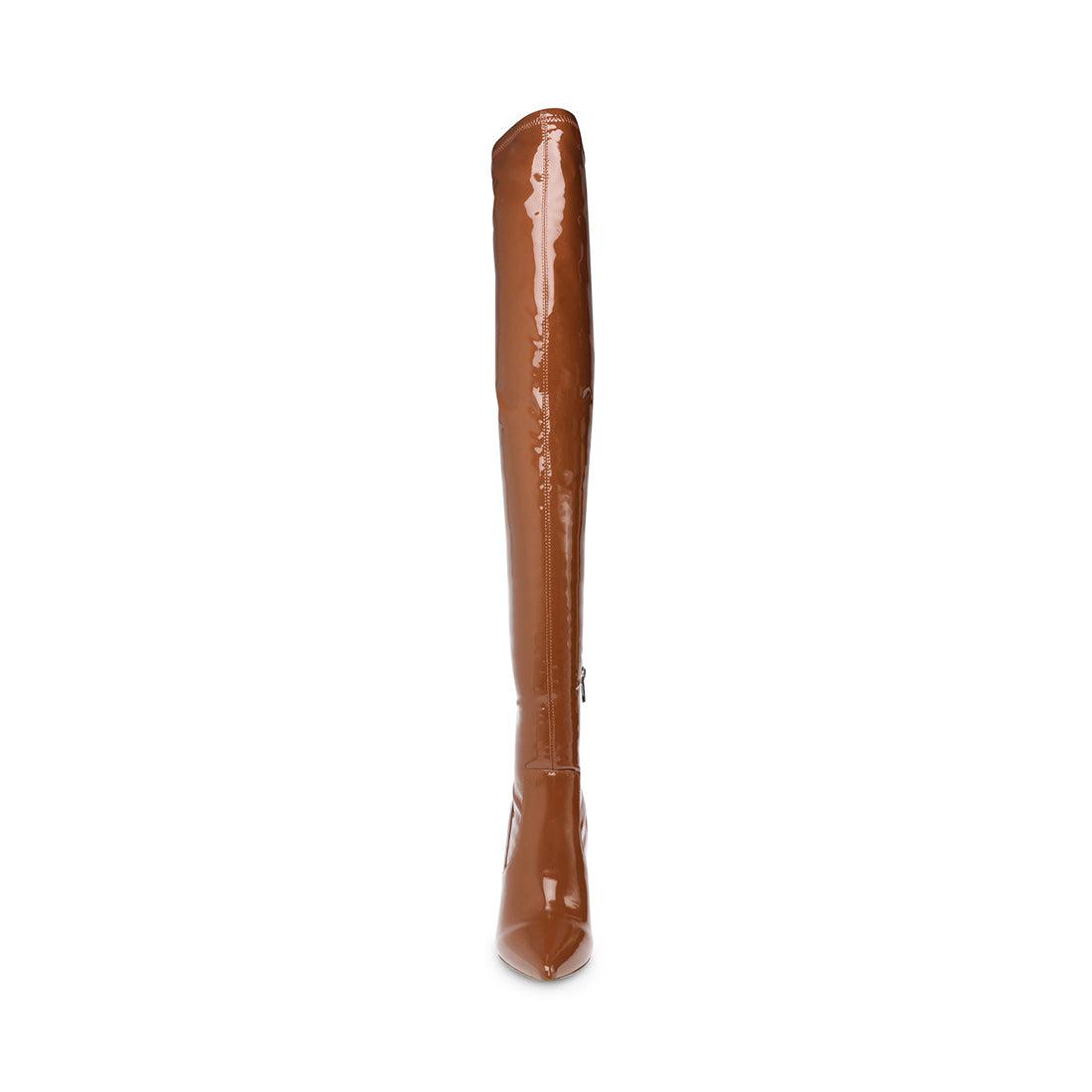 VAVA-voom! A towering stiletto heel, pointed toe and thigh-high shaft make this boot one of the season’s sexiest. If you are in between sizes, size up a half size Stretch upper to fit most leg sizes Reinforced on top with a silicon strap to ensure no slouching Zipper for ease of getting on and off 4-way stretch patent Microsuede, textile, synthetic, or vegan leather upper material Textile or vegan leather lining Synthetic sole 4 inch heel height Size 6 measurements: 16.5 inch shaft top circumference, 23.5 inch shaft height Size 8 measurements: 17.25 inch shaft top circumference, 24.5 inch shaft height Size 10 measurements: 18 inch shaft top circumference, 25.25 inch shaft height Imported