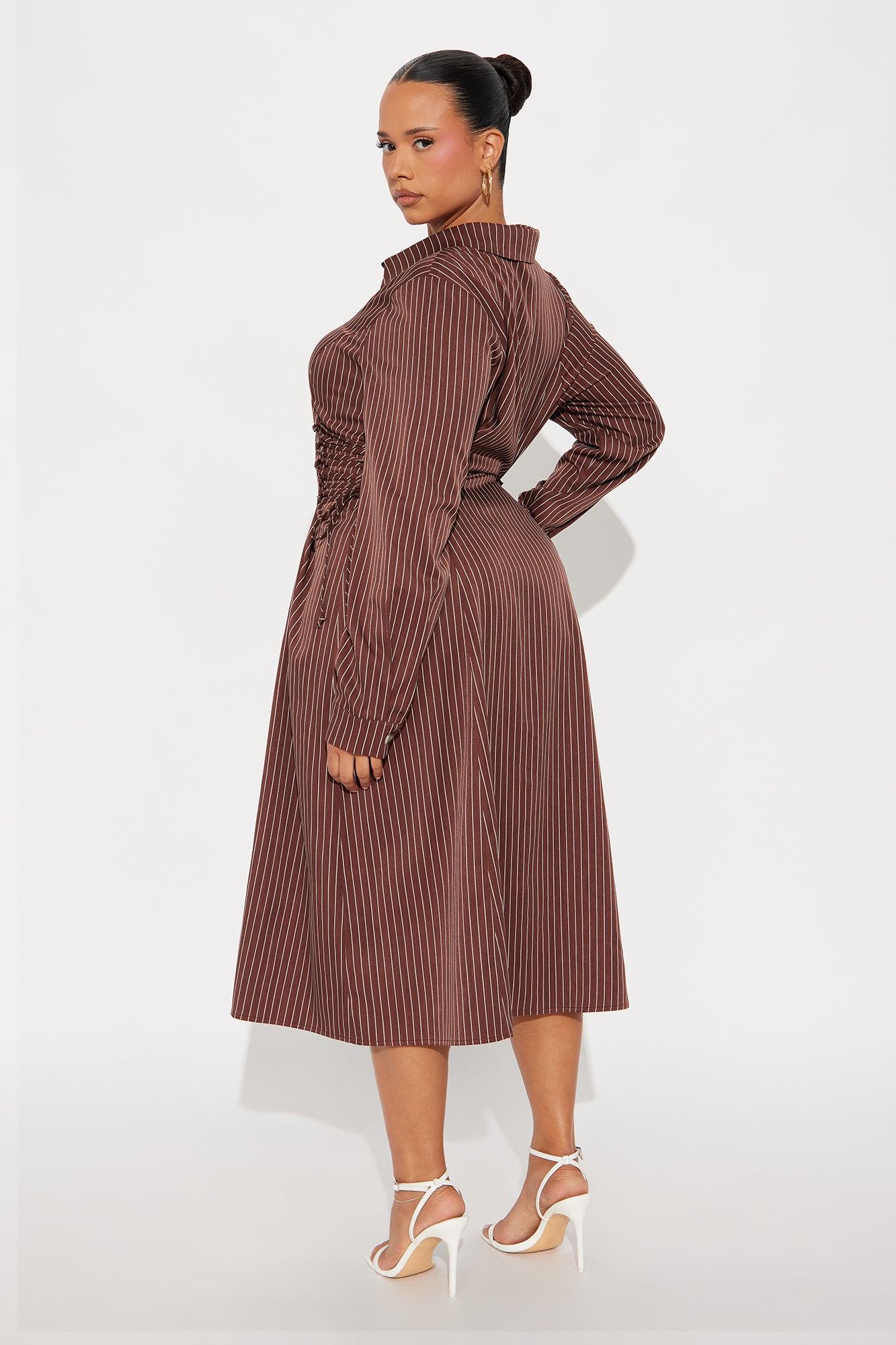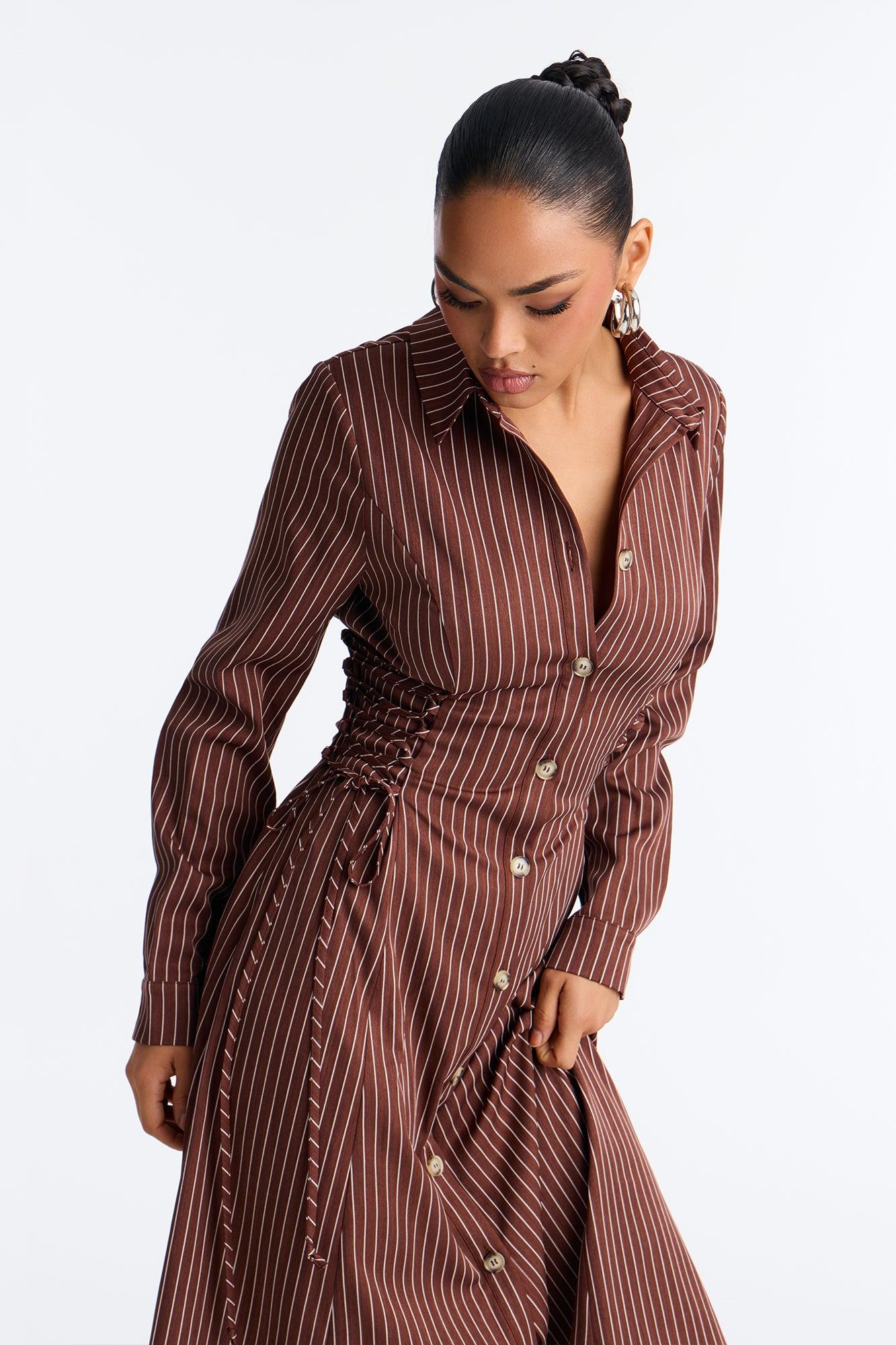 Veda Lace Up Pinstripe Midi Dress - Chocolate/Combo Female