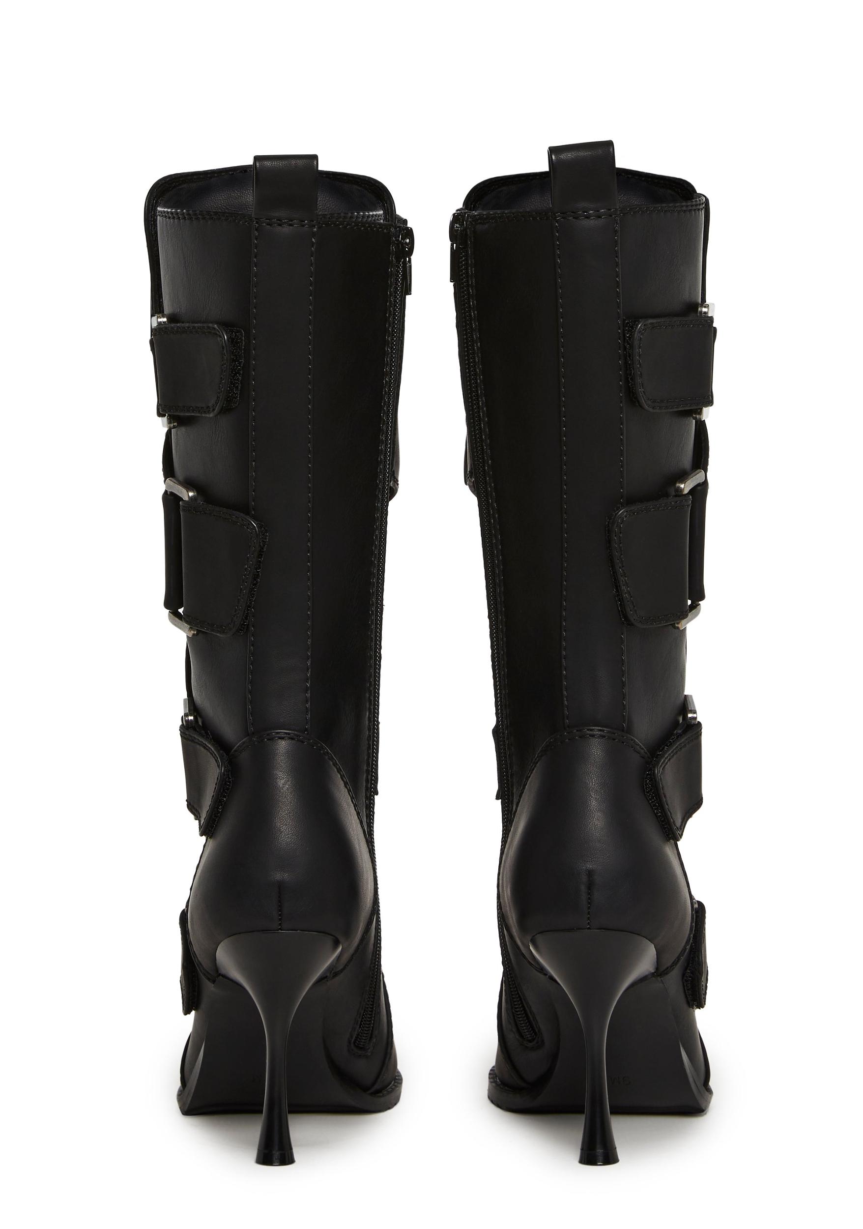 Vegan Leather Bullet Moto Boots Darker Wavs - Black