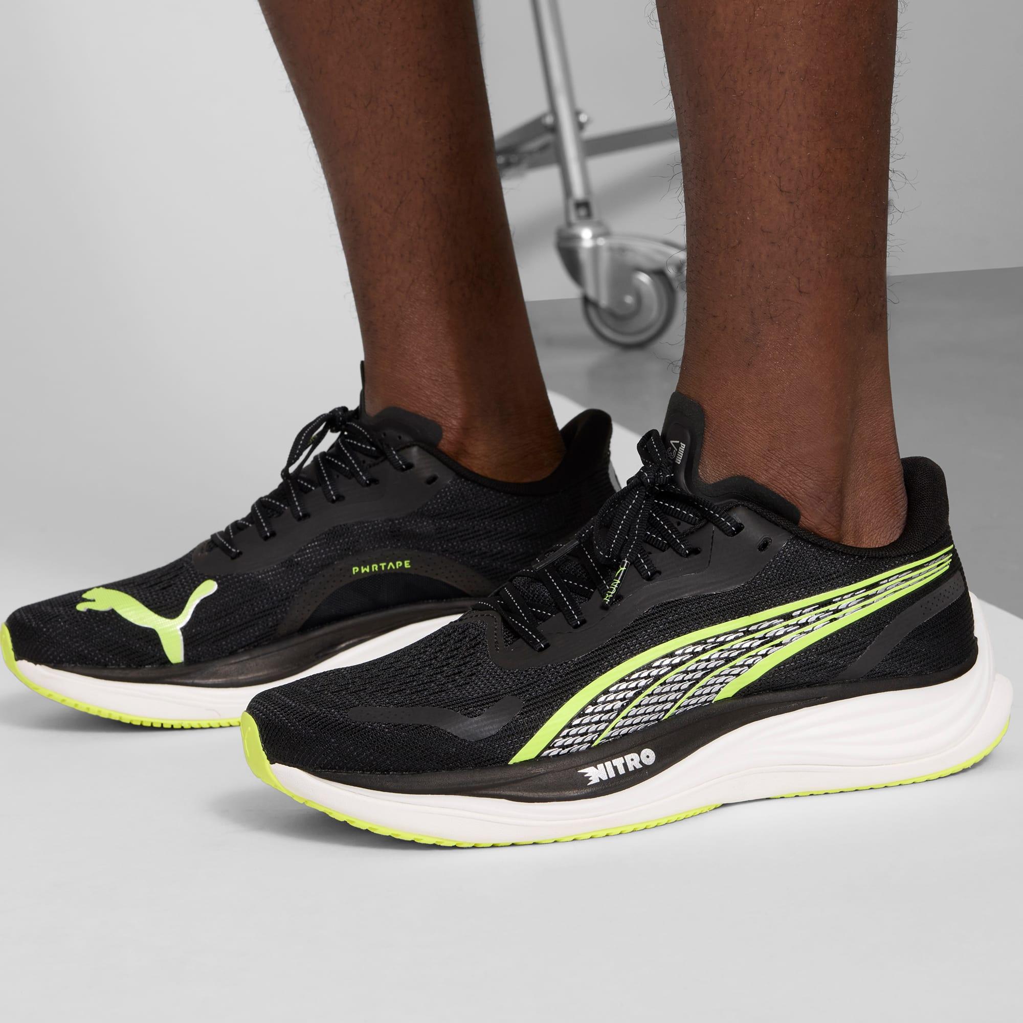 descriptionThe Velocity NITRO™ 3 continues as the PUMA flagship running shoe, containing NITRO™ foam cushioning. It's the perfect place to start if you're looking for a do-it-all trainer from RUN PUMA. What you get is a sleek design and outstanding comfort that will keep you going through any distance. Check it out now.Style: 379614_03Color: PUMA Black-Yellow Alertfeatures & benefitsNITRO™: Foam technology providing pinnacle responsiveness in an extremely lightweight packagePROFOAM Lite: Durable and responsive EVA foam insoledetailsMesh upperRecommended for: neutral pronatorsLace closureHeel-to-toe drop: 8mmCushioning level: mediummaterials & careMaterial informationSockliner: 100% TextileOutsole: 100% RubberUpper: 63.70% Textile, 36.30% SyntheticLining: 100% Textile